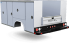 The LCF Gas High Profile is the go-to for work truck solutions with its durable construction, a bevy of optional accessories, and is available in a variety of sizes. External compartments are cab high and offer 50% more storage space than the standard models. The 49″ wide cargo area and 8″ step bumper allow access to a bed area big enough to haul 4′ wide sheets of plywood. Rain gutters above and weather stripping inside all doors ensure tools and equipment stay protected from the elements while Ignition key coded, Fortress 5-point locking compartments and an ignition key coded locking tailgate as standard features, with internal master lock as an option, provides unprecedented security. Ergonomic D-shaped handles are the highlight of a body engineered with productivity and ease of use in mind. Standard aluminum appearance package and stainless-steel tailgate guard showcase the perfect blend of style, strength, and common-sense truck body features to be proud of to represent any business while delivering a bottom-line advantage.