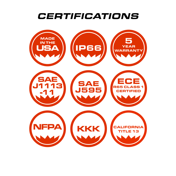 Meets all SAE, CT13, KKK, NFPA, ECE R65 requirements