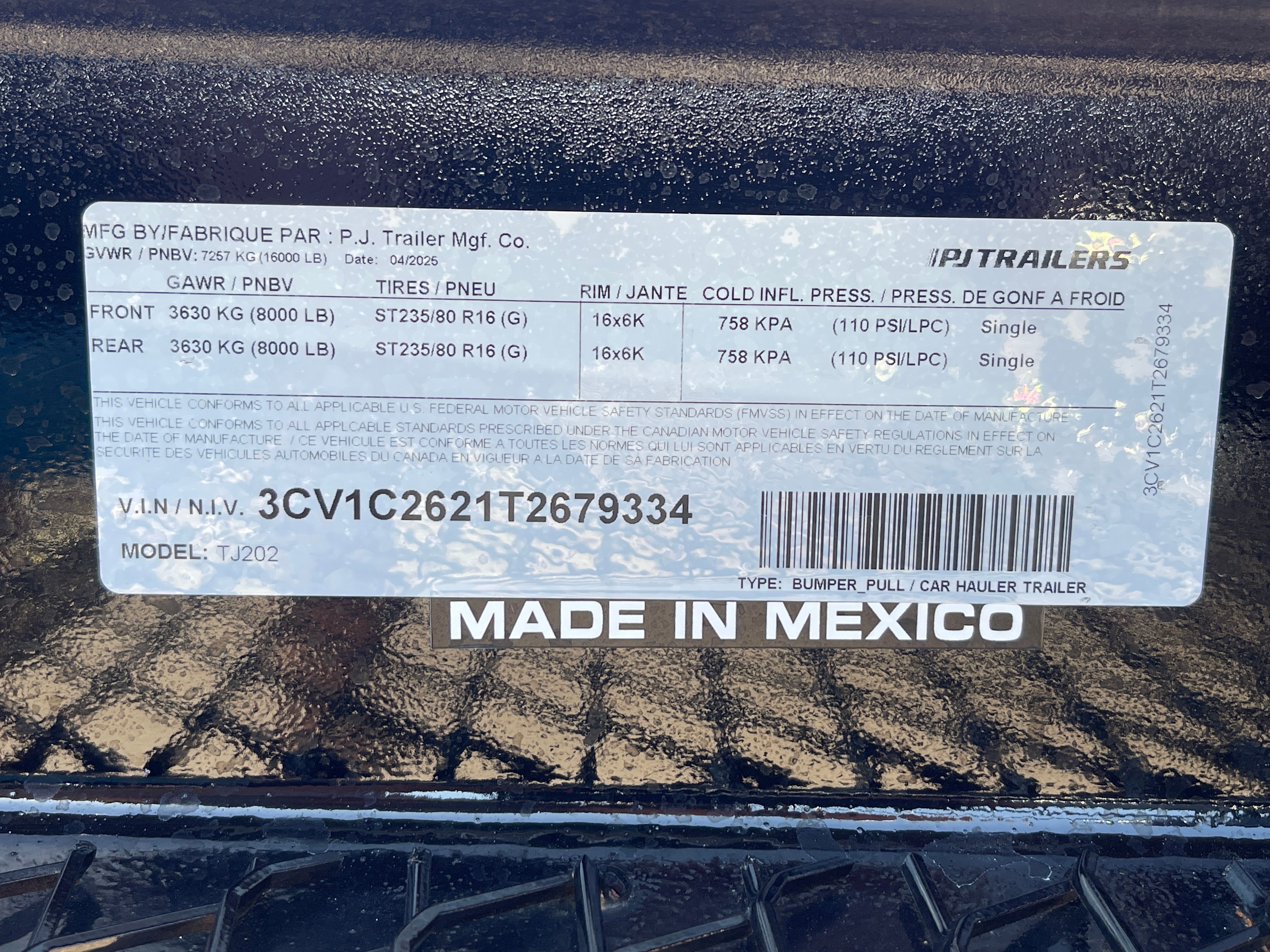 ** 2025 PJ TJ 16ft HD Equipment Tilt Trailer **