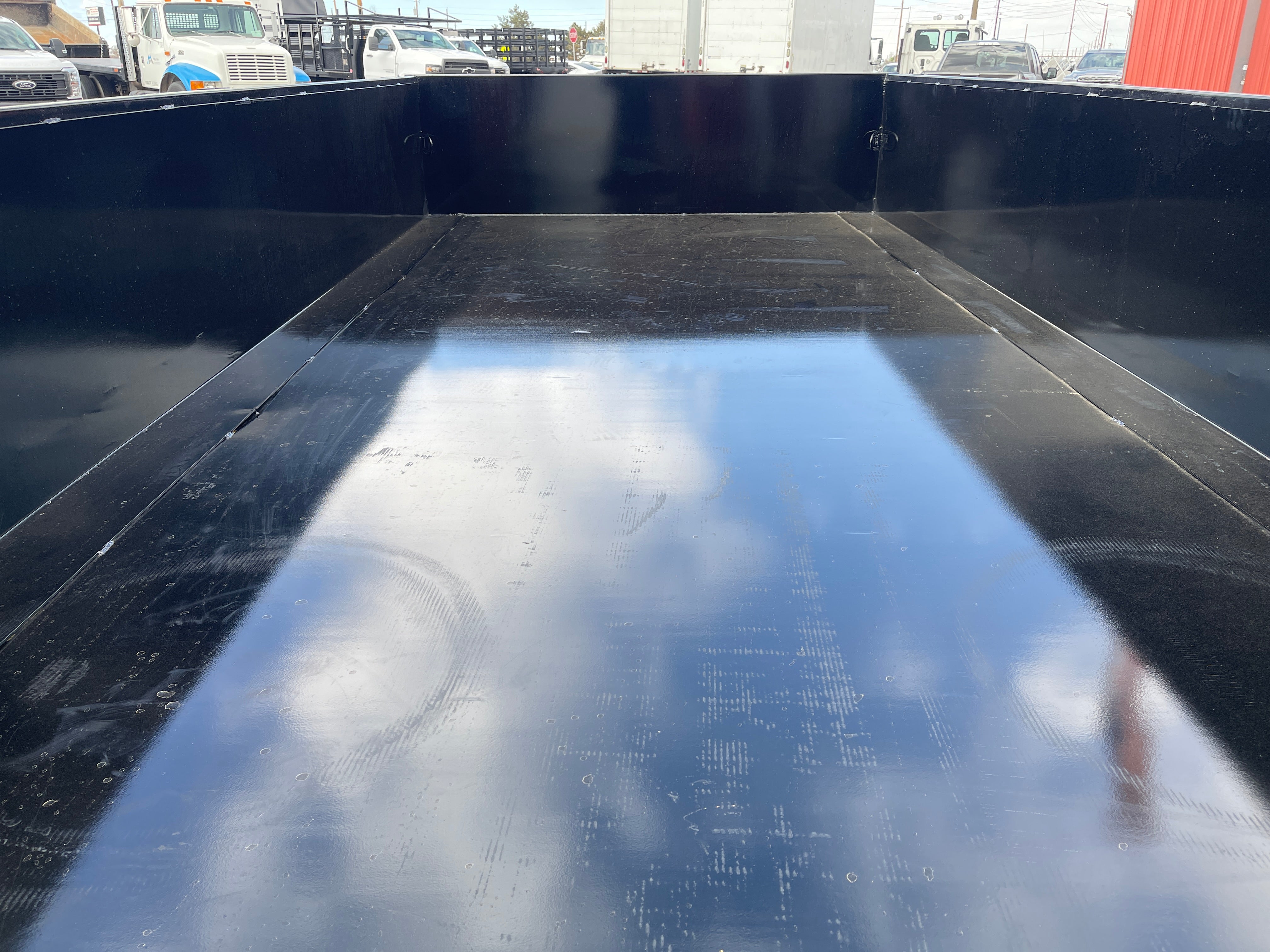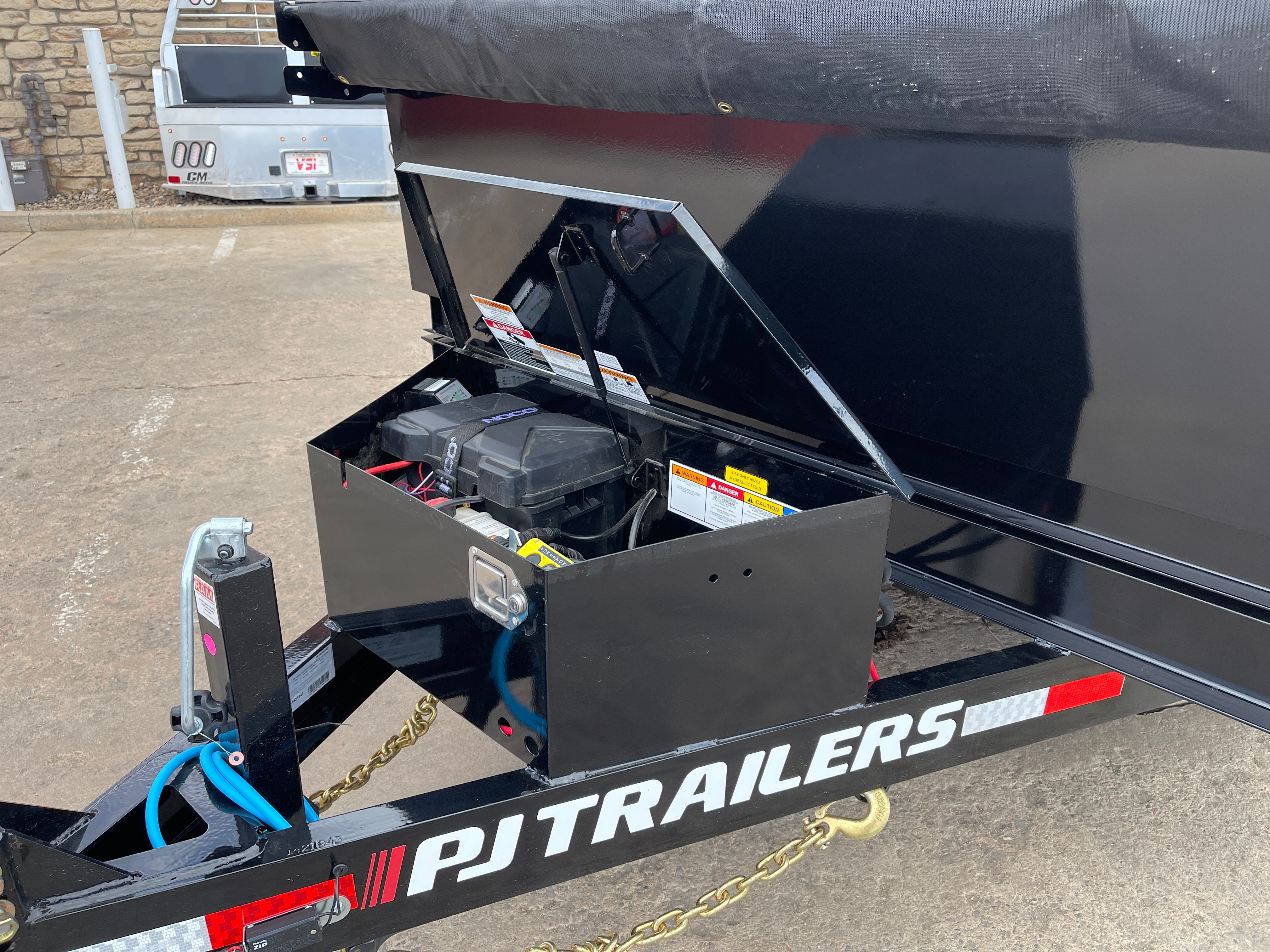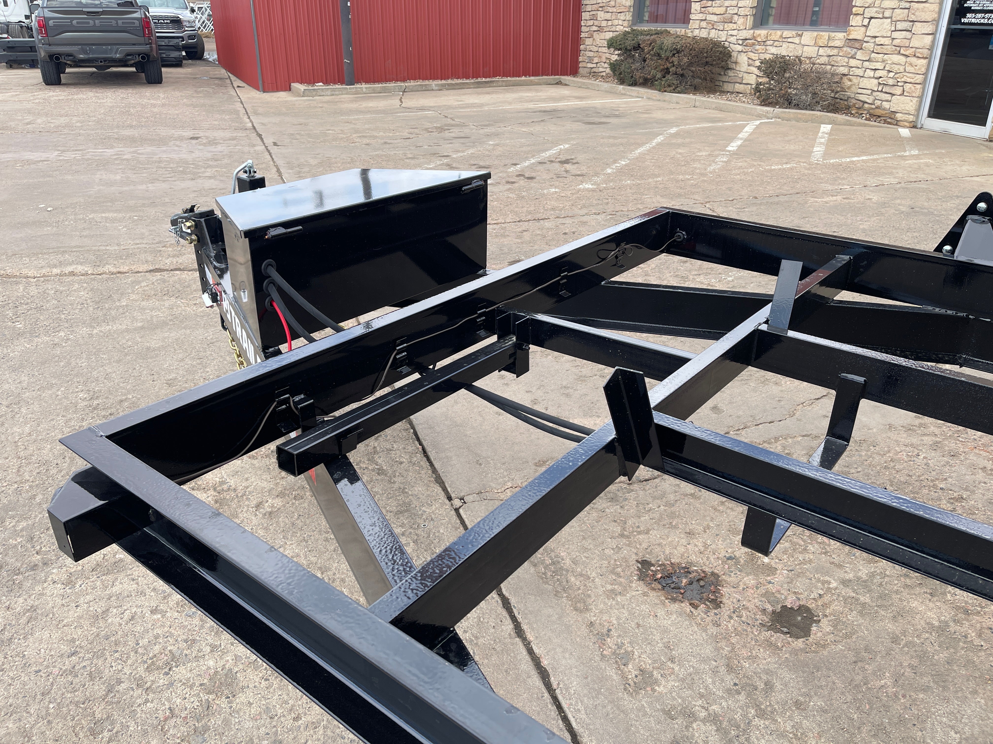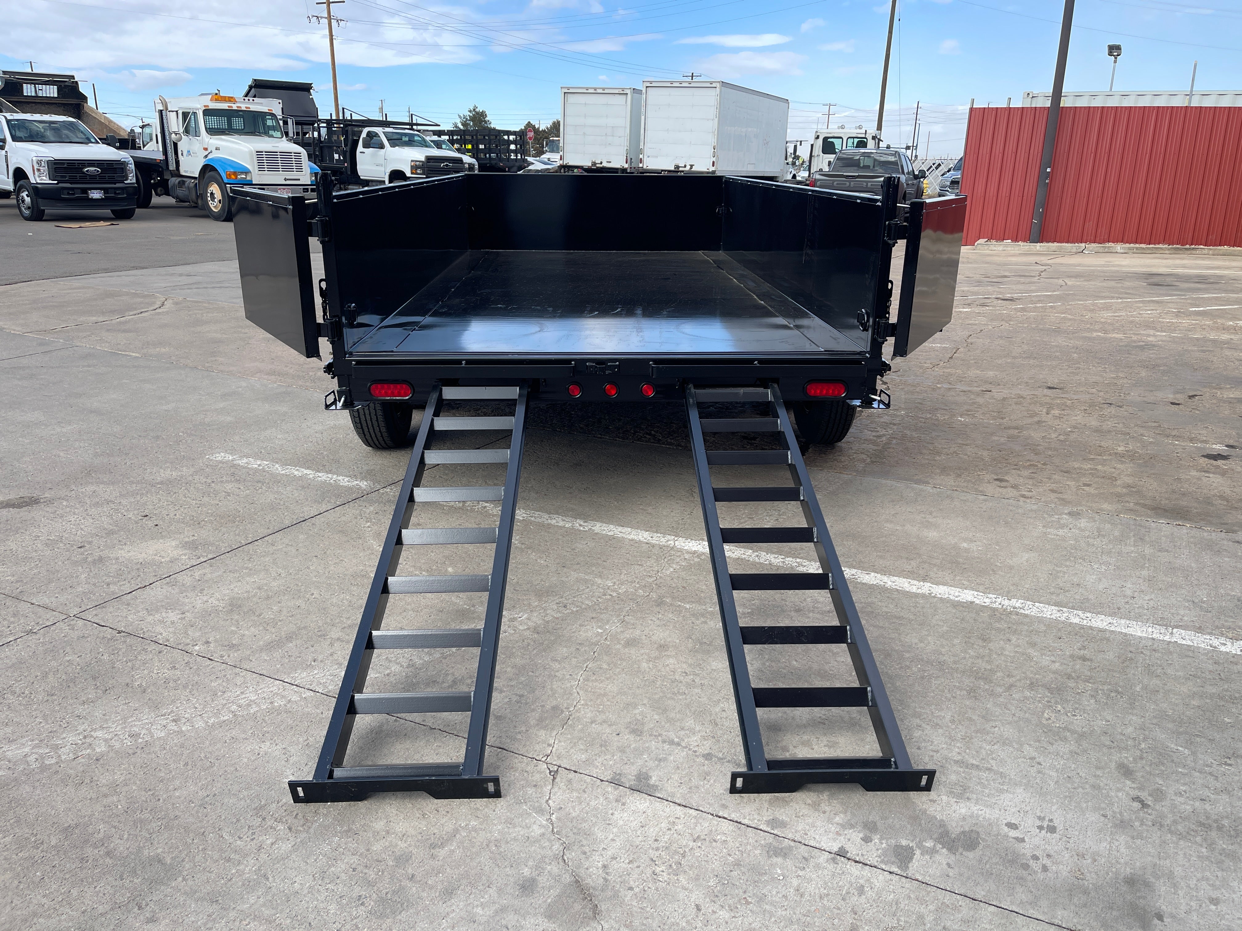 14ft Steel Dump Trailer, (168” L x 83” W) / 24” Steel Sides / Combination Rear Barn Doors & Spreader Gate / 6-Stake Pockets / 4- D Rings / 10 Gage Steel Floor & Sides / 2 Drop Down Outriggers / 64” Adjustable Steel Ramps with Safety Lock Slide -N-Store System / Manual Tarp / Hydraulic Scissor Lift - Power Up-Power Down & Gravity Down / 5" x 17" Hydraulic Cylinder / (2) 7,000lbs Electric -Spring Axles (14,000 GVWR) / Slipper Spring Suspension (6-Leaf) / BP 2-5/16" Adjustable Coupler / Demco EZ-Latch Safety Chains / Fastway Electric Breakaway System w/ Charger / 7 Way All-Weather Wiring Harness / 12V Deep Cycle Battery / 110V Integrated Trickle Charger / 7,000lbs Top Wind Jack - With Drop Leg / 1/8" Diamond Plate Steel Fenders / Trailer Rated 10P 235/80R16 Radial Tires / Spare Tire Holder and Much More