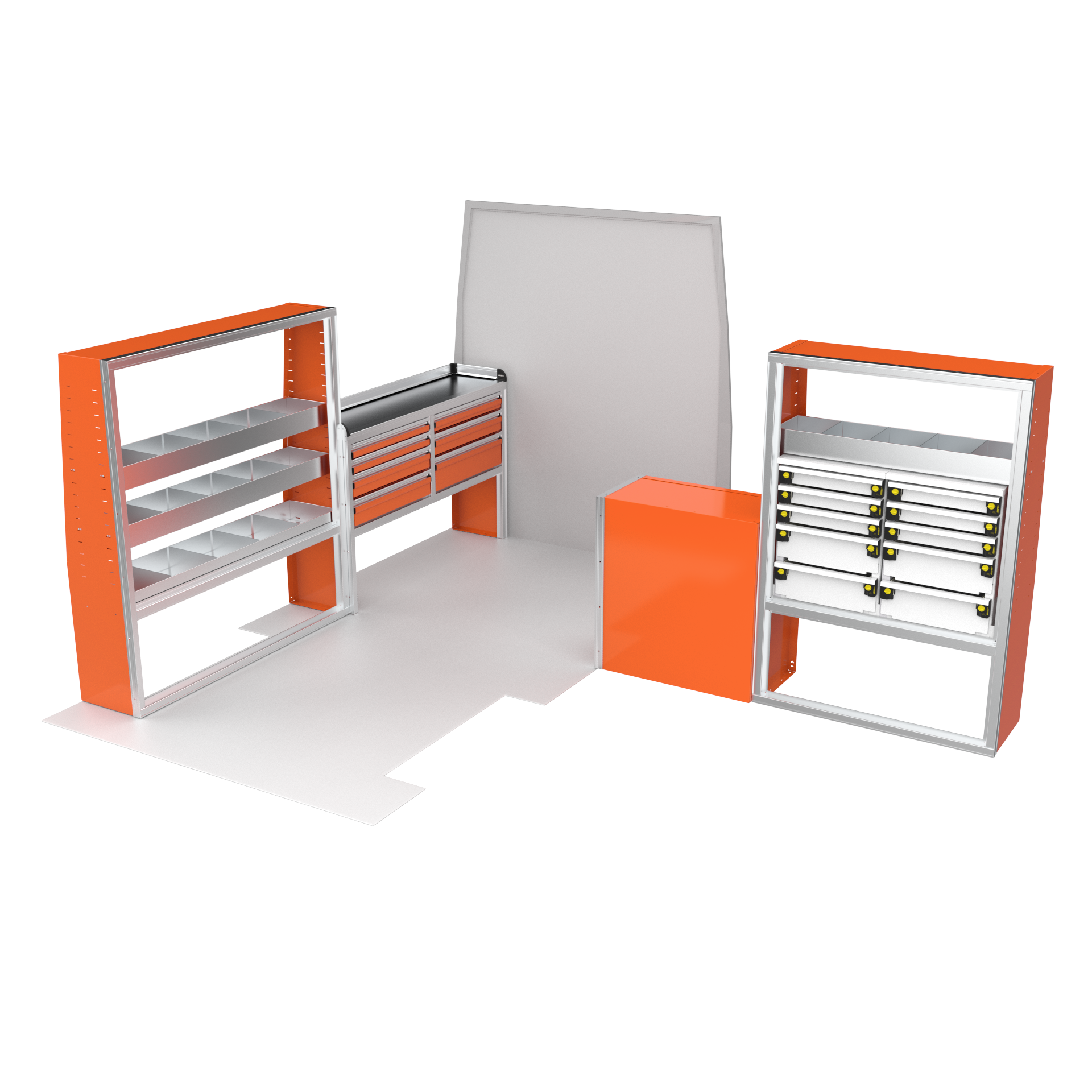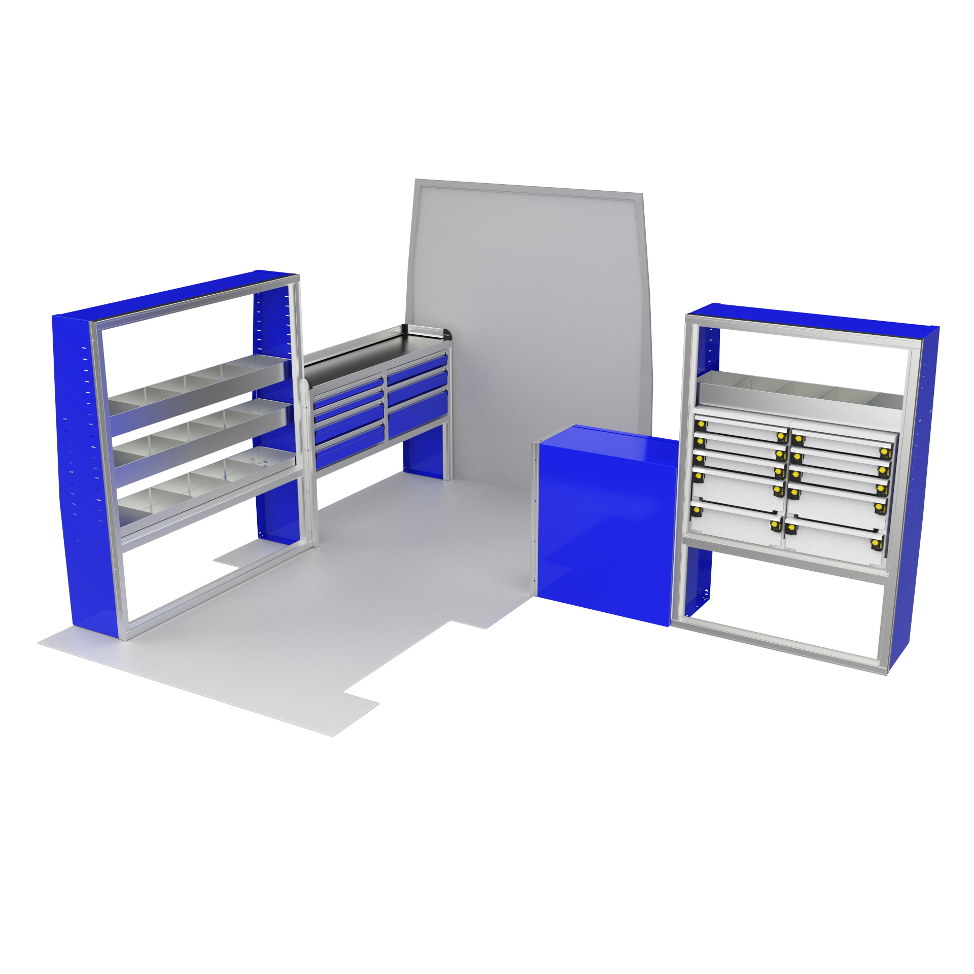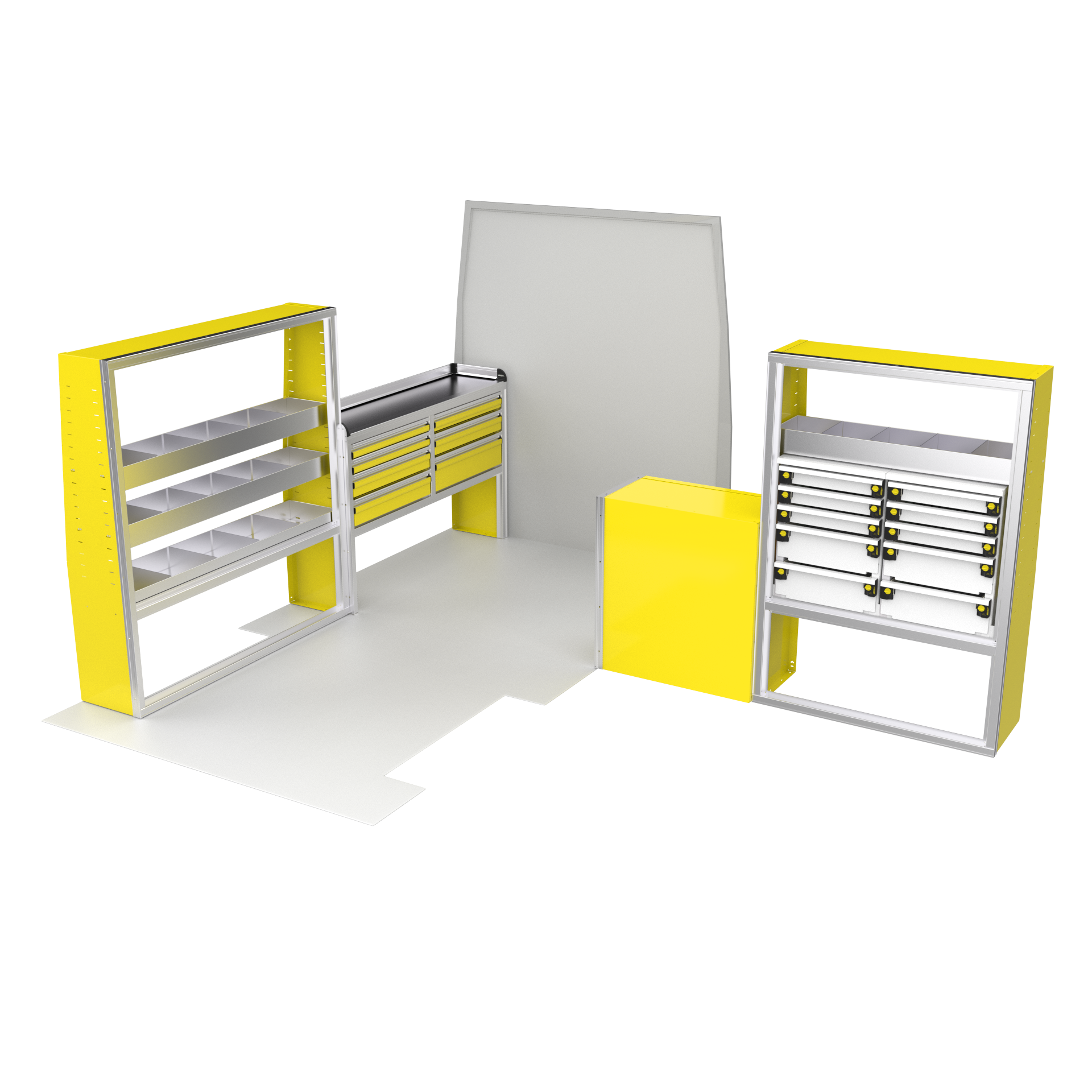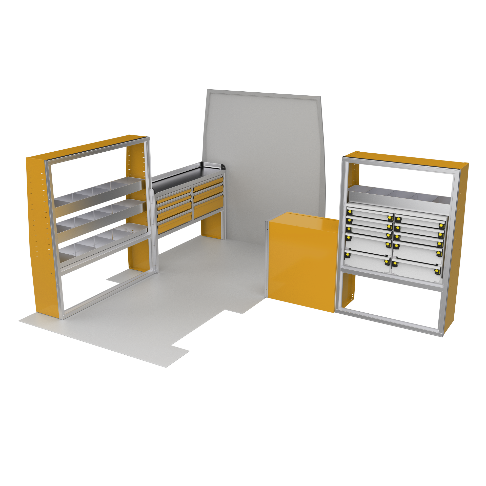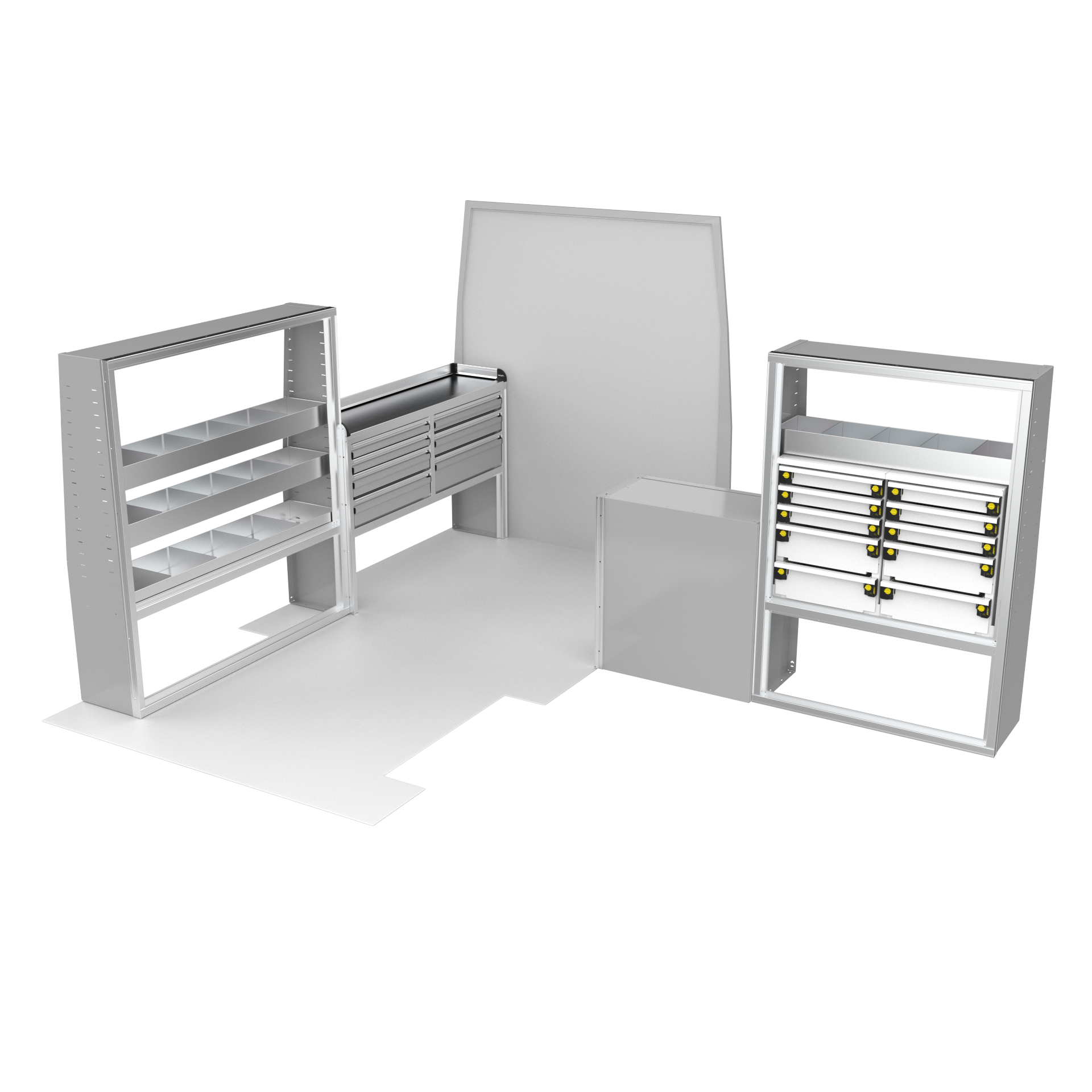 Maximize your Ford Transit’s potential with the VanPro Package FT2—designed for Ford Transit 150/250/350 medium or high roof models. This complete storage solution includes everything you need for optimal organization and functionality on the go. Built from durable aluminum, the package includes a VanPro Workbench FT304, MotionGlide Shelving Units, and additional drawer housing to ensure that you’re fully equipped to work and stay organized wherever you are.