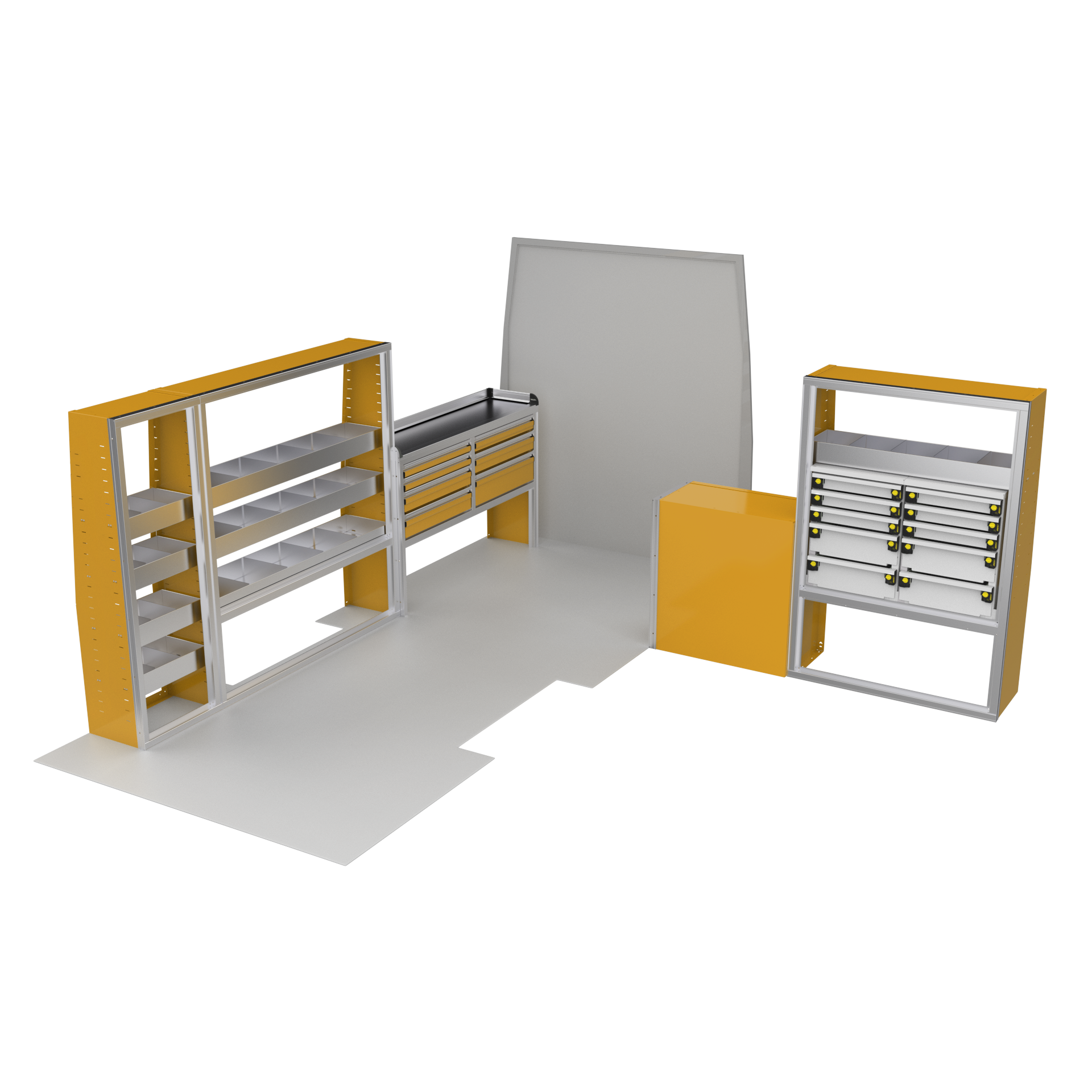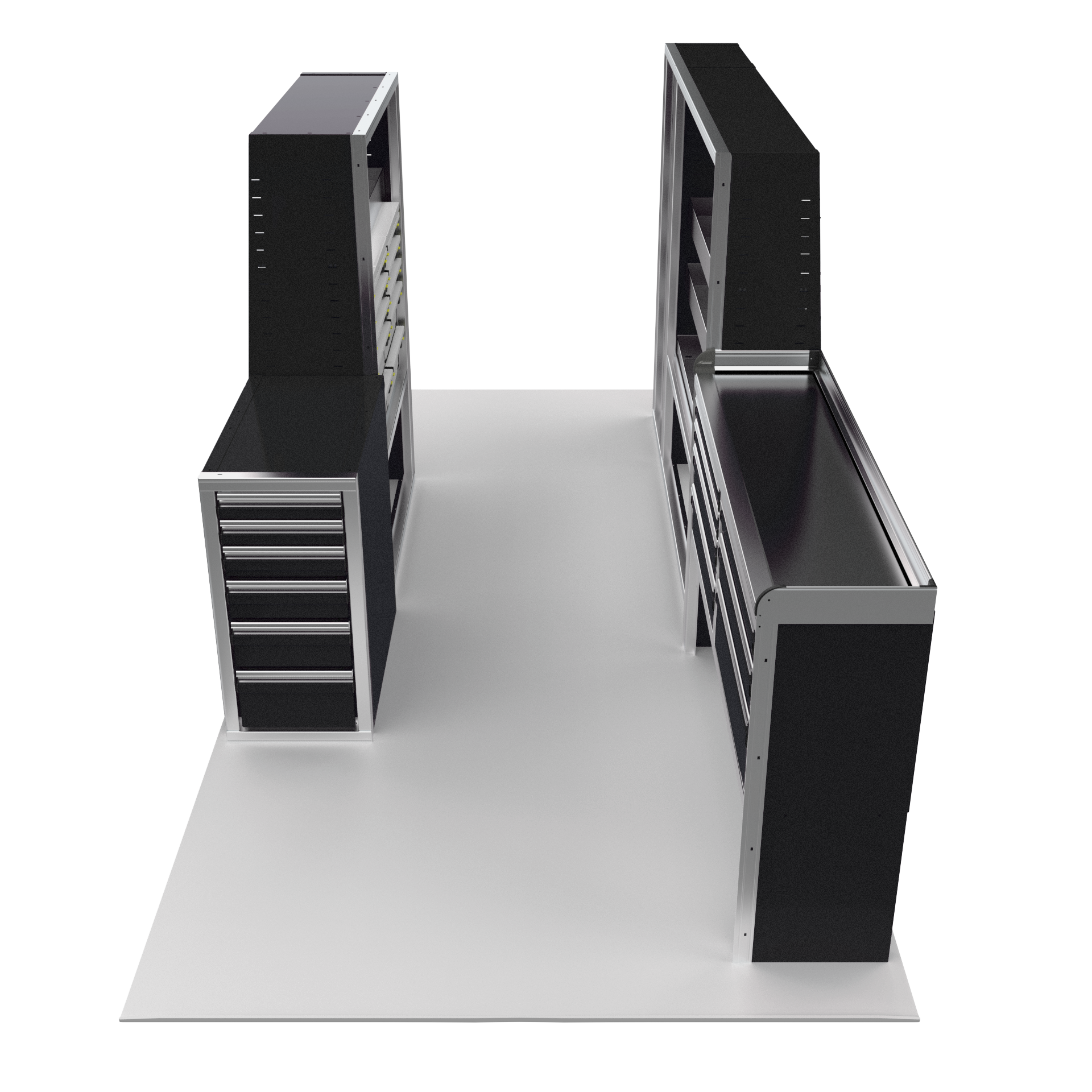 For the ultimate storage solution in your Ford Transit Extended model, the VanPro Package FTEXT2 has everything you need. Designed for medium or high roof Transit 150/250/350 vans, this system includes versatile shelving, a durable workbench, and a drawer housing for additional small-item storage. Crafted from premium aluminum and built to withstand the toughest demands, this package offers easy access and maximized space to keep your tools and equipment organized and ready to go.