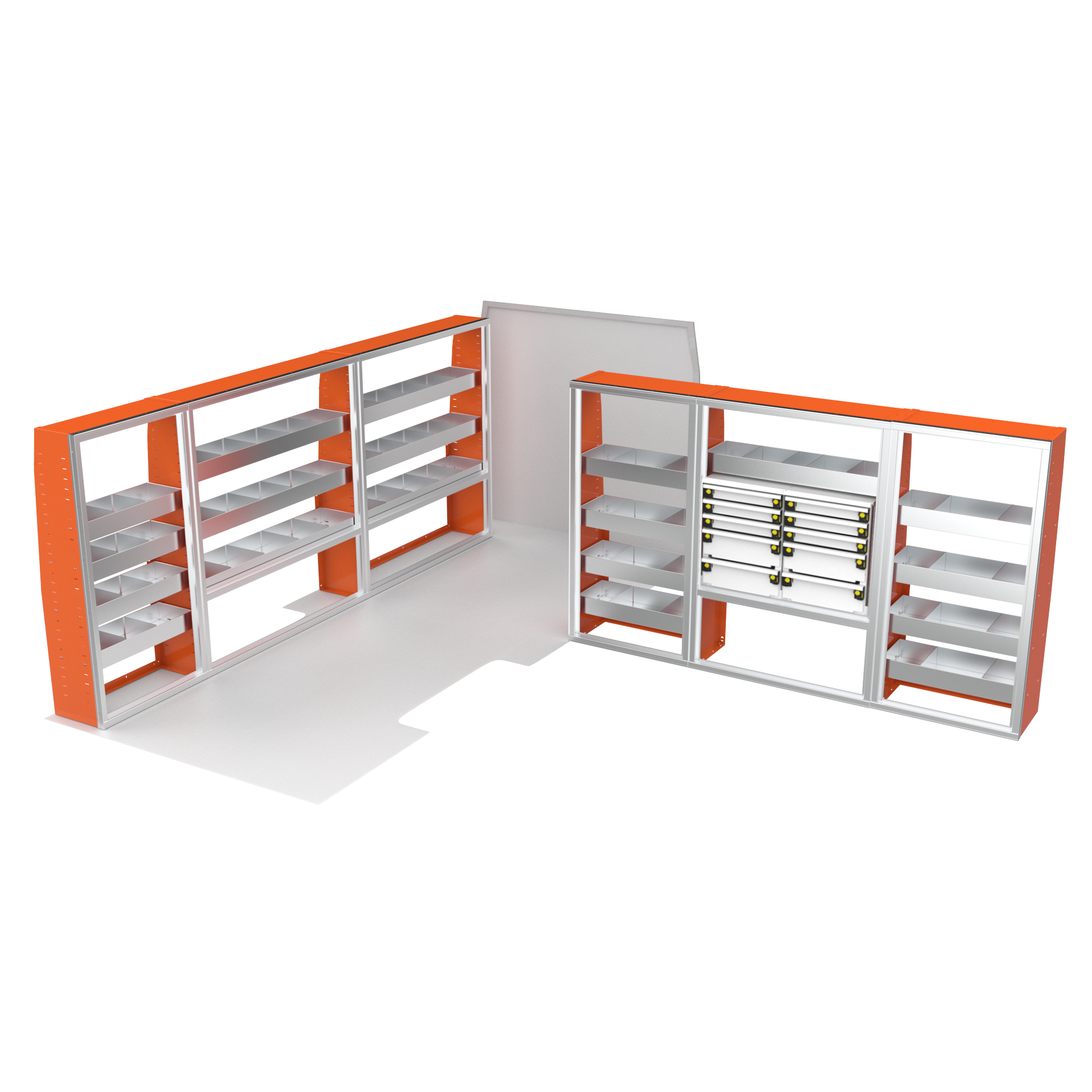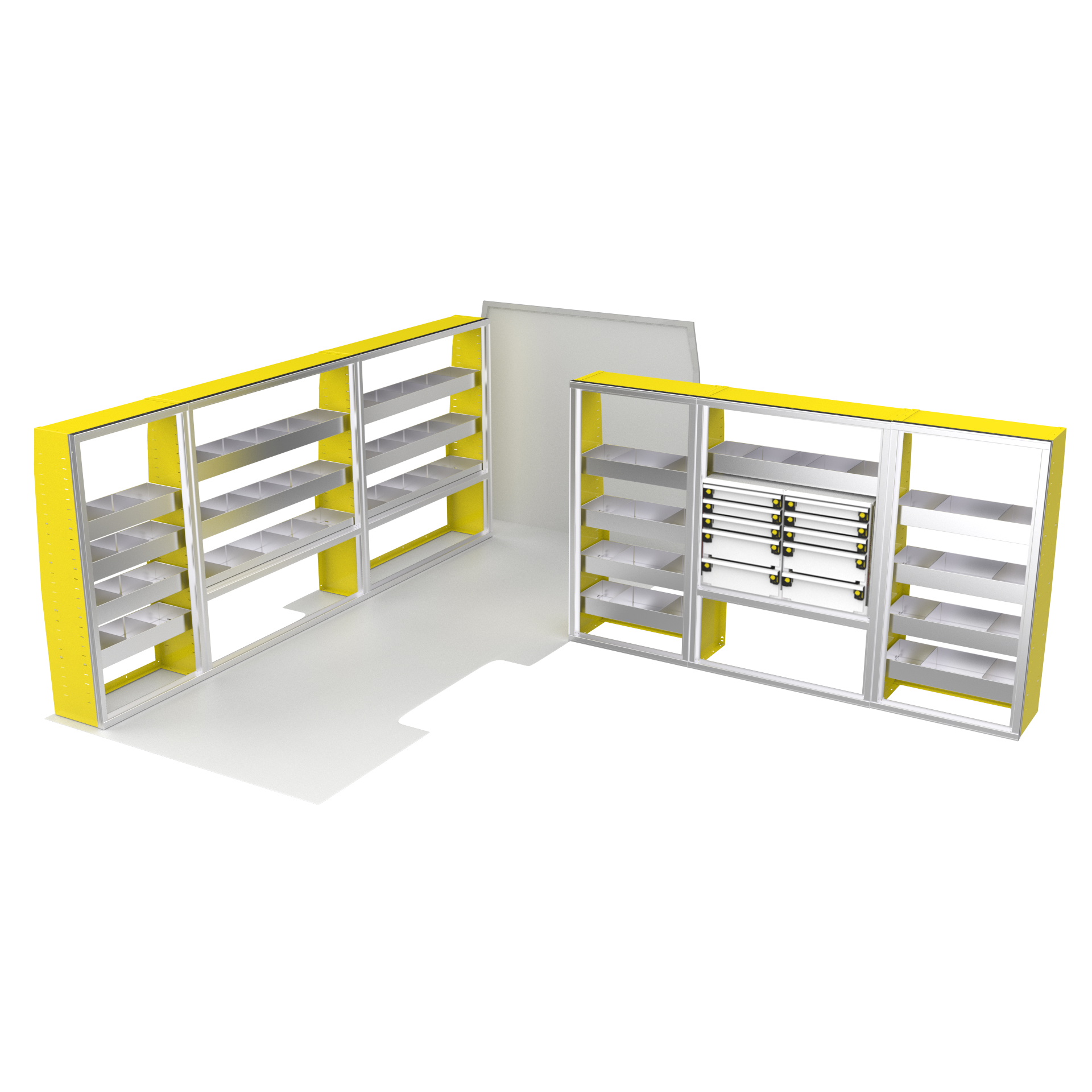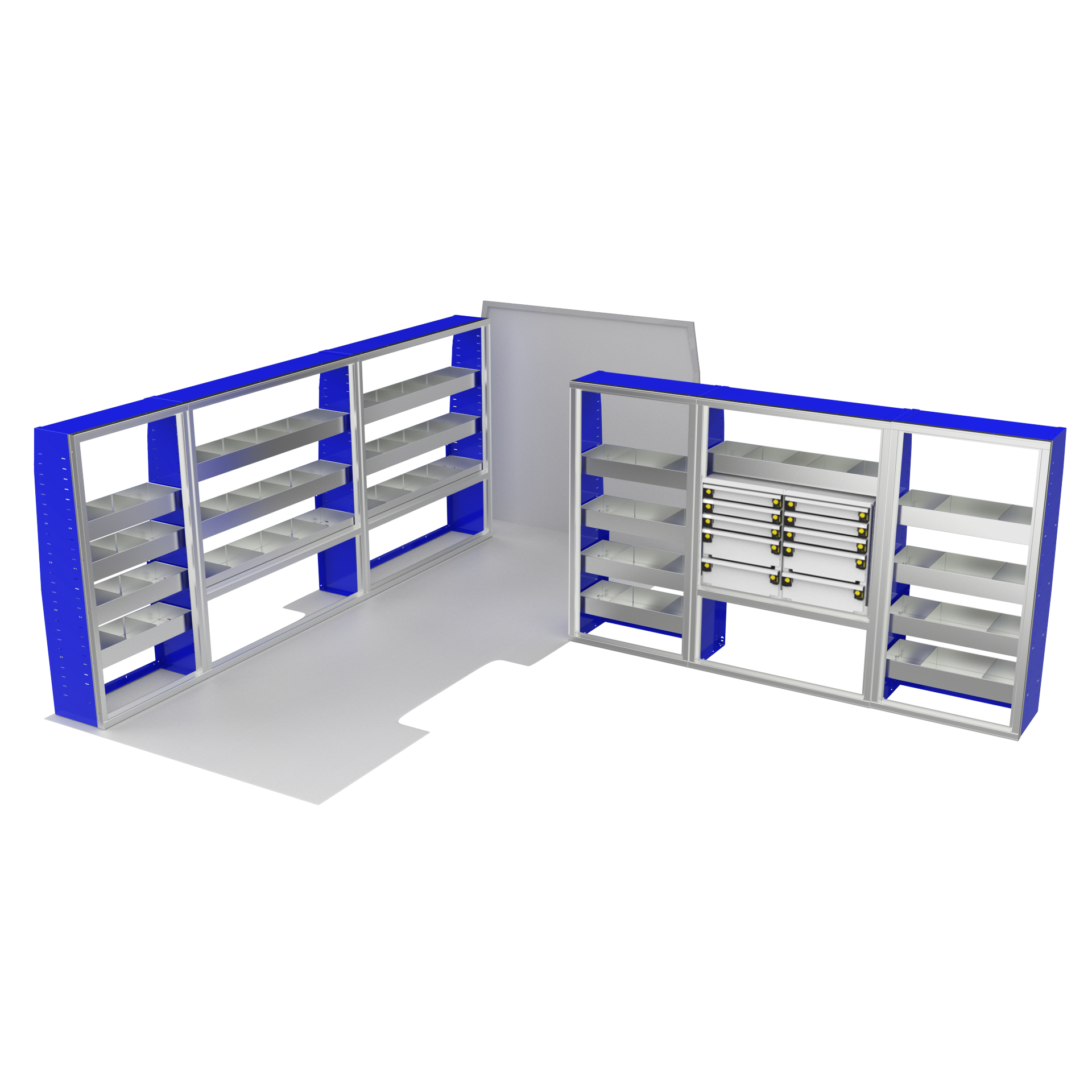 The VanPro Package ML1 for Mercedes Sprinter 170 combines the MS300 Shelving Unit, MS301 MotionGlide Shelving Unit, MS305 Shelving Unit, and MS306 Shelving Unit to provide an all-encompassing storage solution for your work van. Featuring custom deep shelves, adjustable shelves, motion-controlled shelving, and dividers for enhanced organization, this package is designed to maximize your storage space, ensuring tools and equipment are easily accessible and securely stored.
