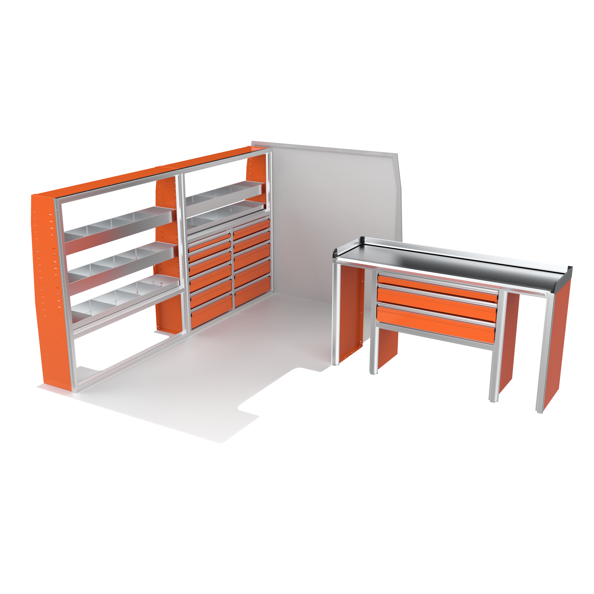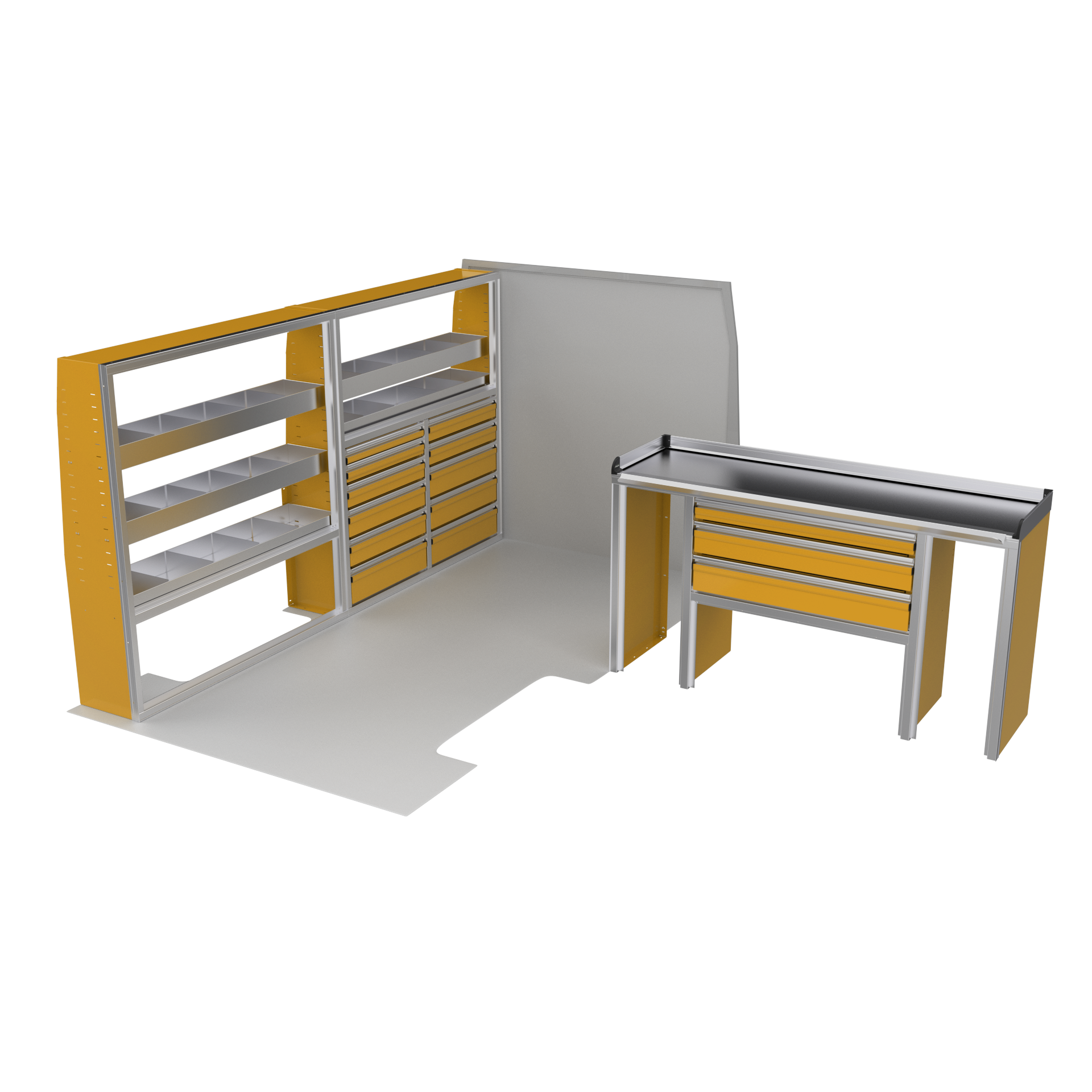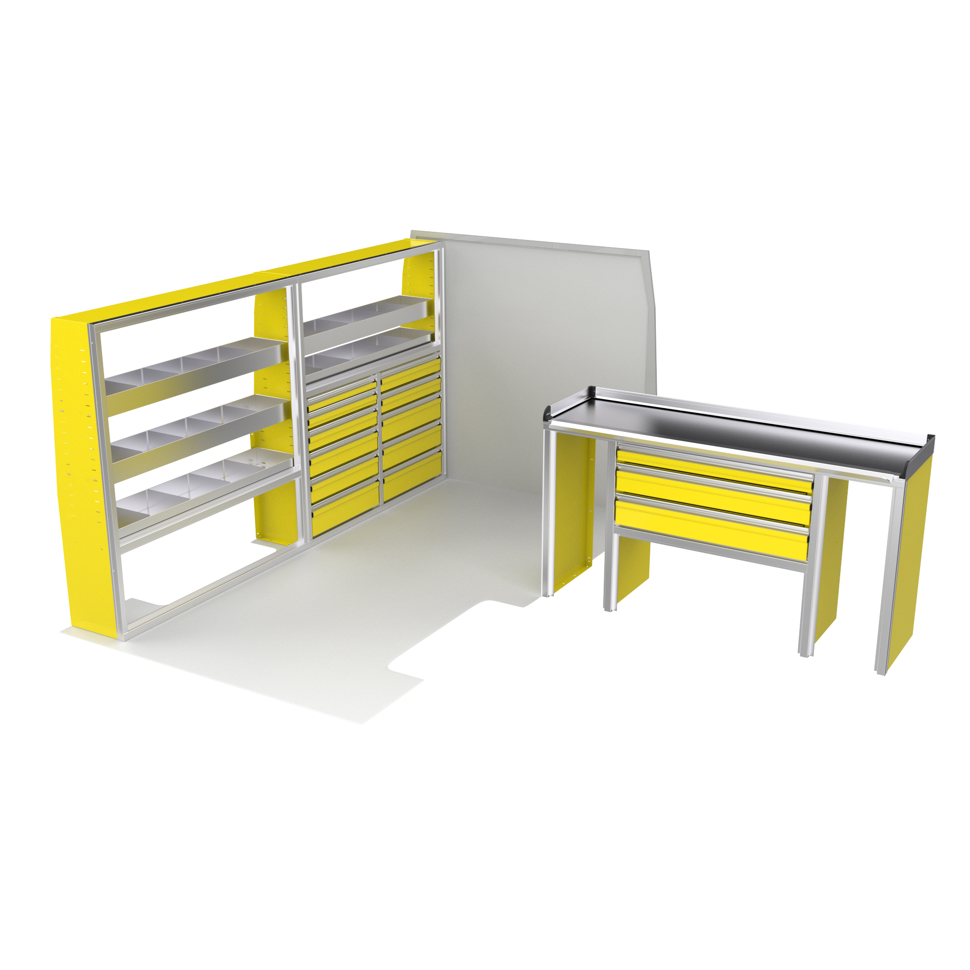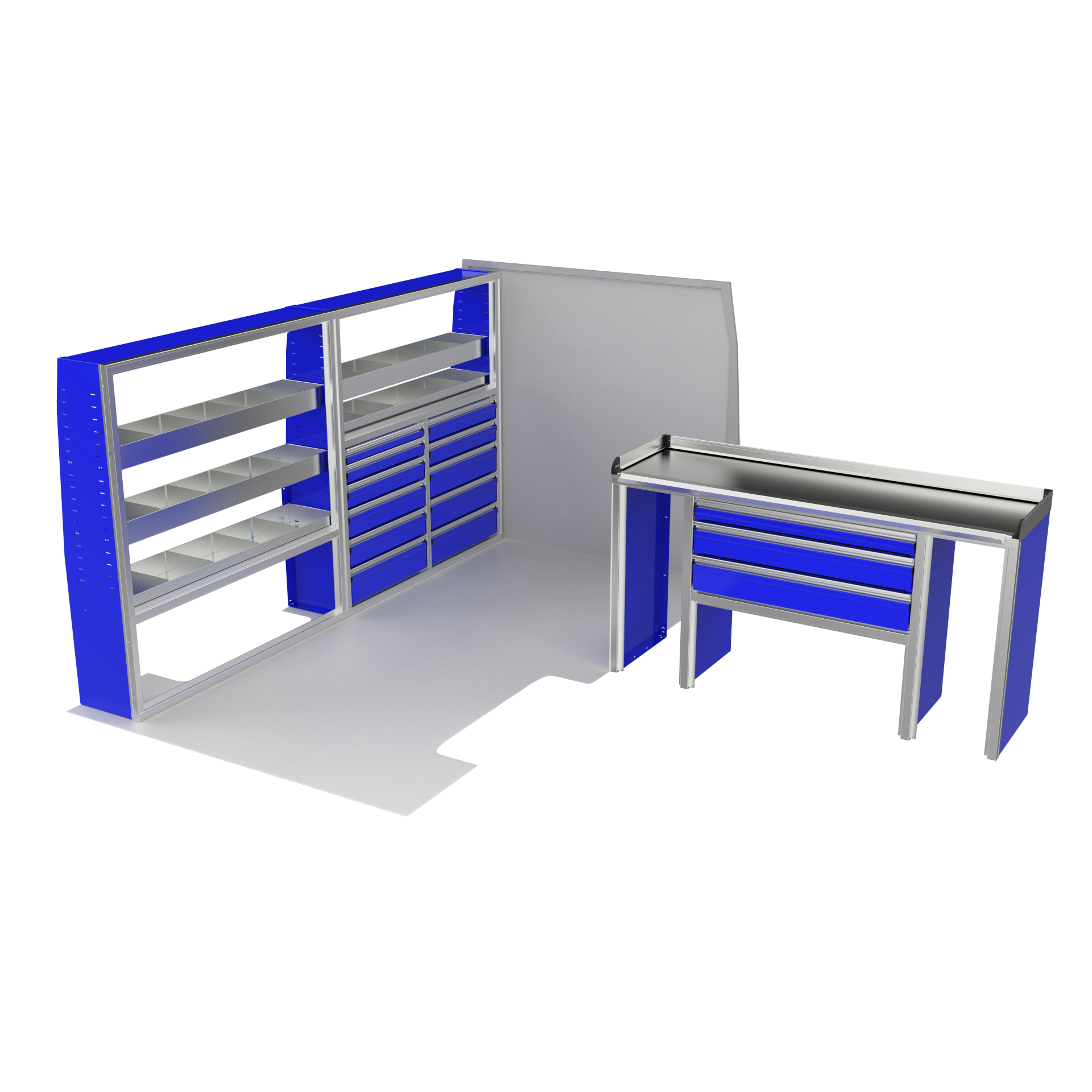 The VanPro Package MS3 for the Mercedes Sprinter 144 includes the MS300 Shelving Unit, MS311 Workbench, and MS312 Shelving Unit. This package offers a combination of customizable shelving, a high-performance workbench with motion-controlled drawers, and additional storage options to enhance organization and accessibility. Designed specifically for the Mercedes Sprinter 144, it provides a complete solution for optimizing your van’s workspace, making it perfect for any mobile business or job site.