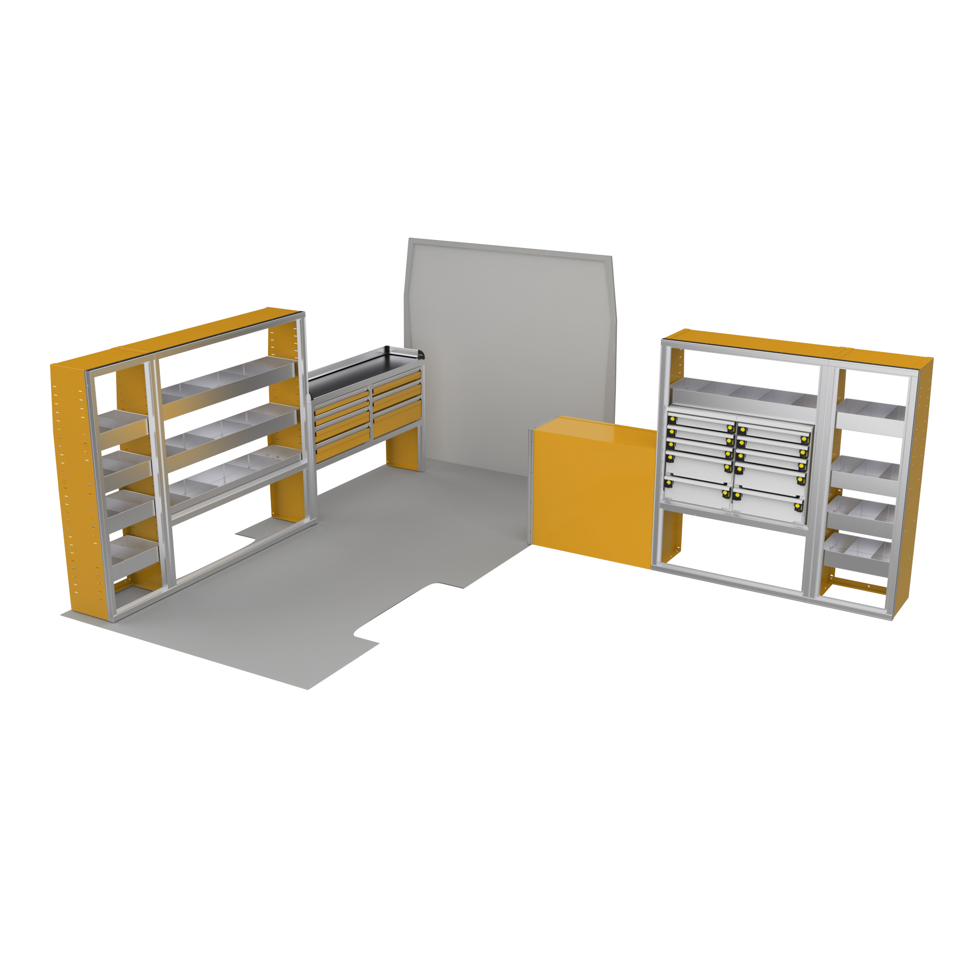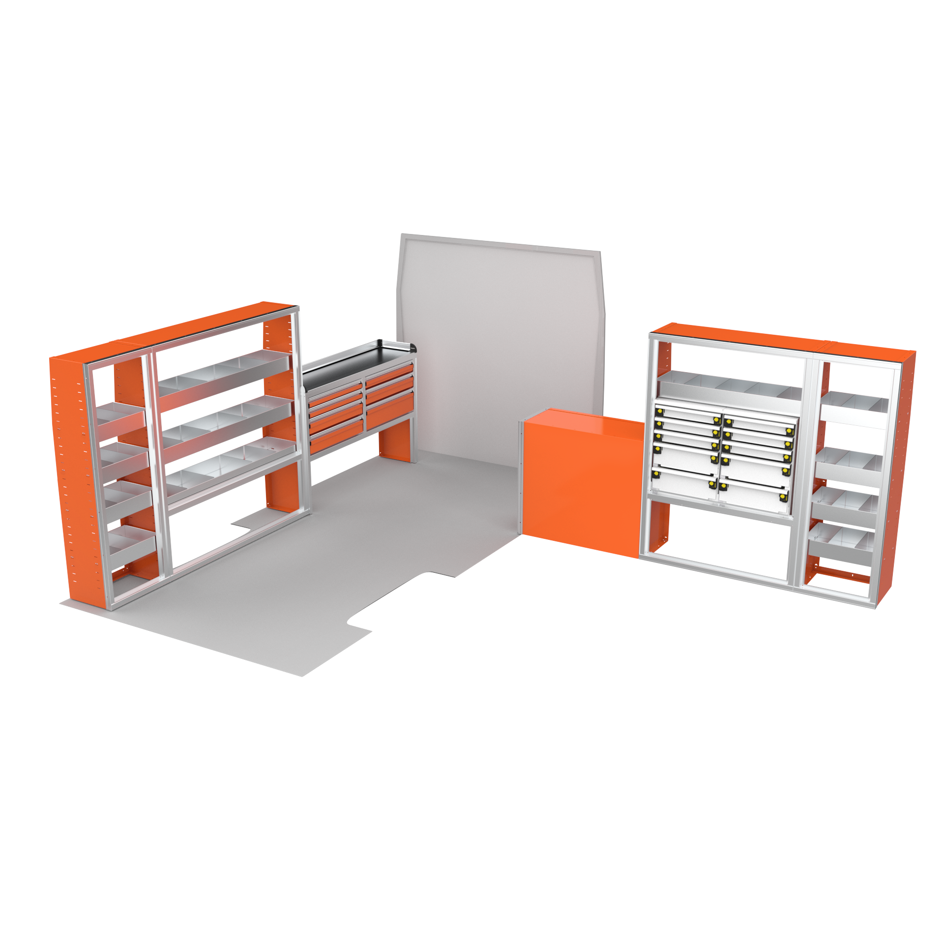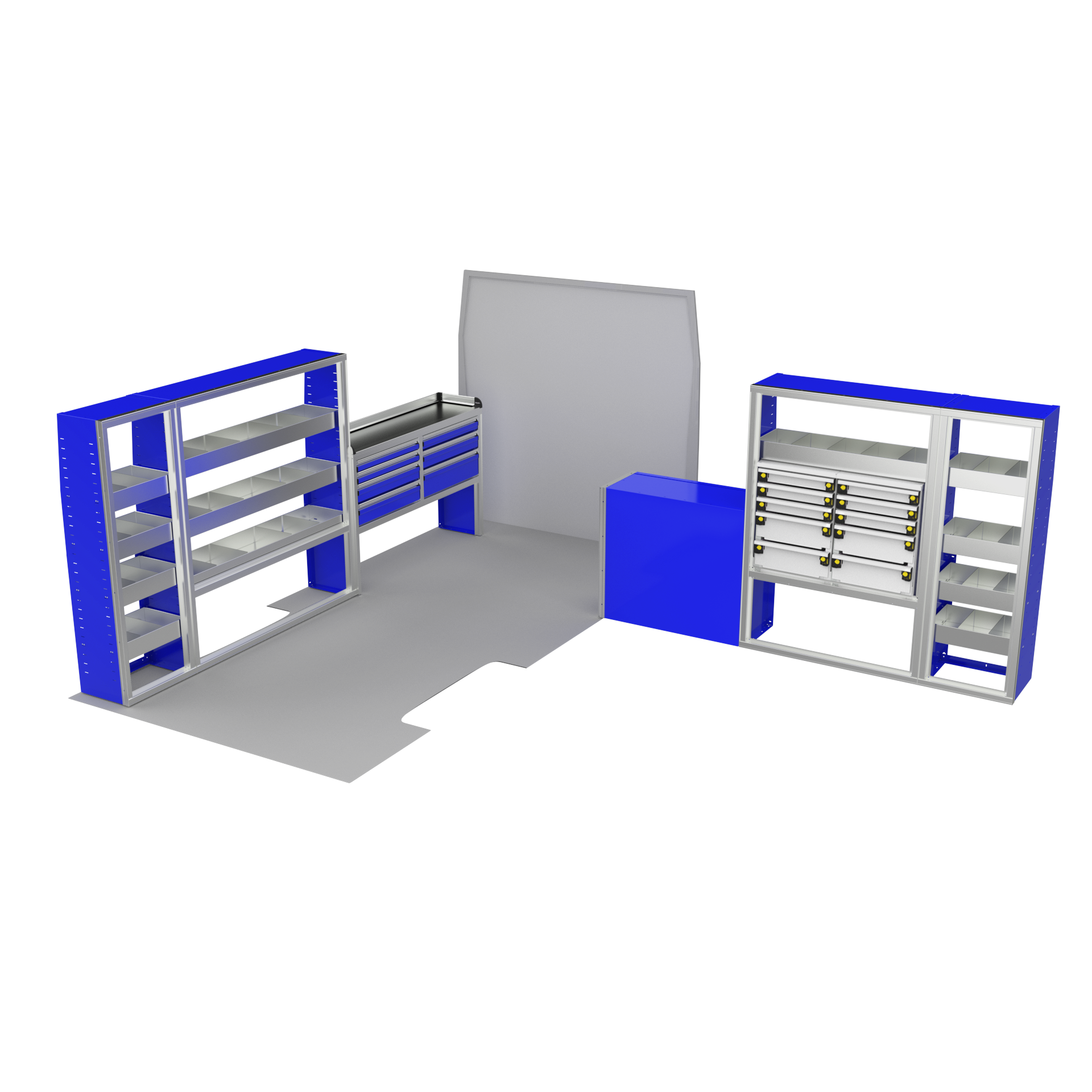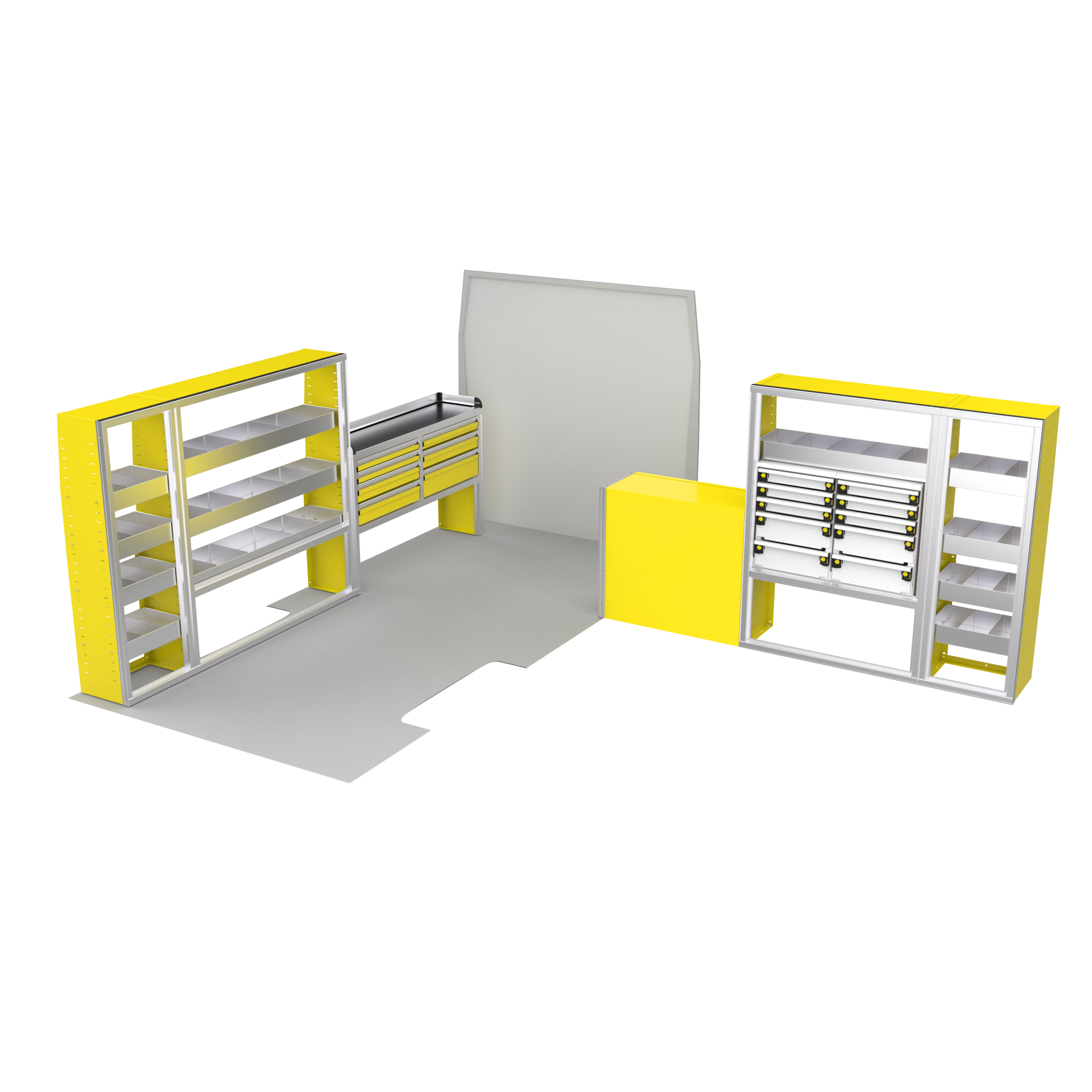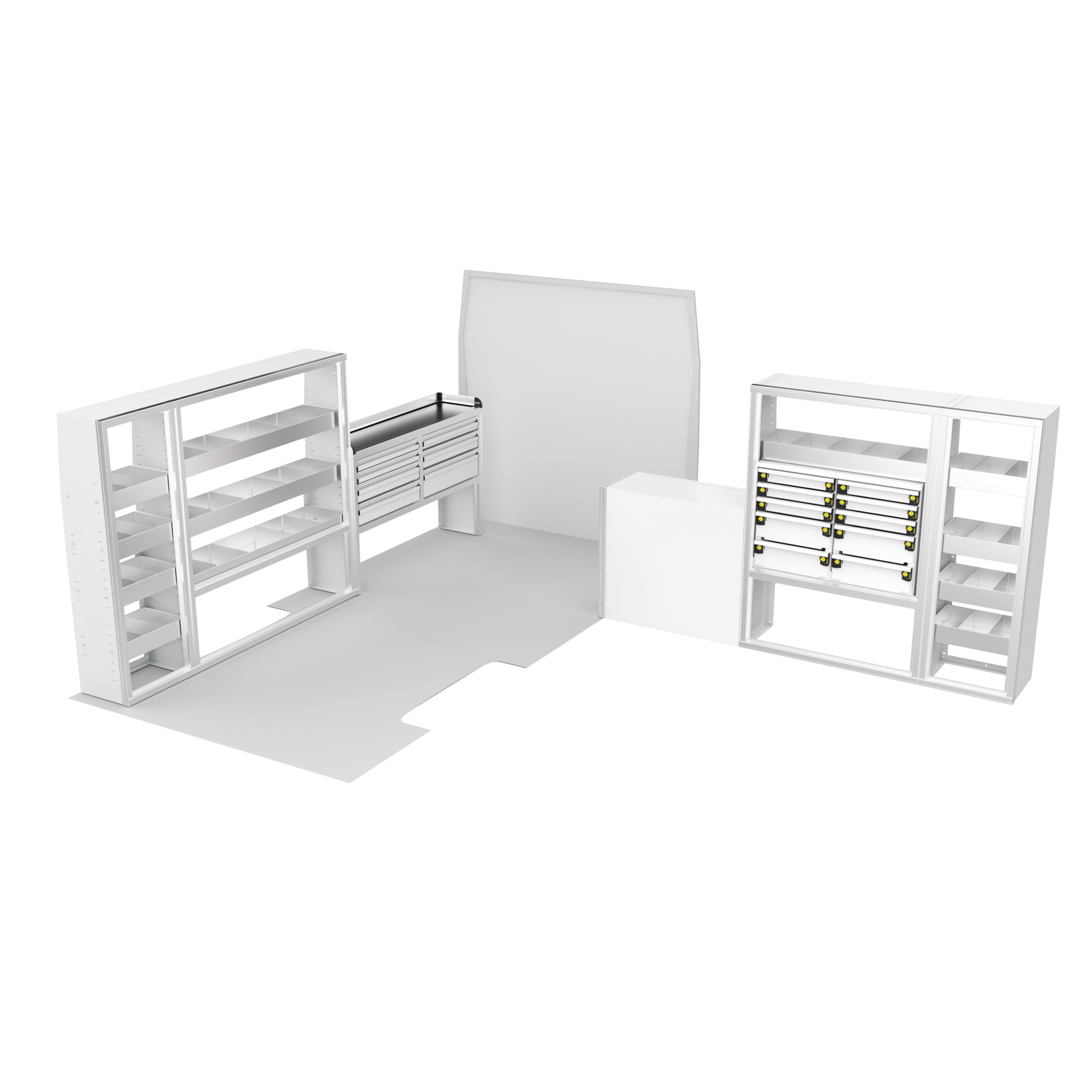 The VanPro Package RPEXT2 combines the RP-300 Shelving Unit, RP-301 Shelving Unit, RP-303 Workbench, RP-304 Drawer Housing, RP-305 Shelving Unit, and RP-306 Shelving Unit to provide a comprehensive, efficient storage and workspace solution for your Ram ProMaster 2500/3500 EXT. This package offers adjustable shelving, MotionGlide technology, secure drawer storage, and a spacious workbench, all built with lightweight, corrosion-resistant aluminum for maximum durability and efficiency. Ideal for work vans, this package ensures flexibility, reliable organization, and long-lasting performance.