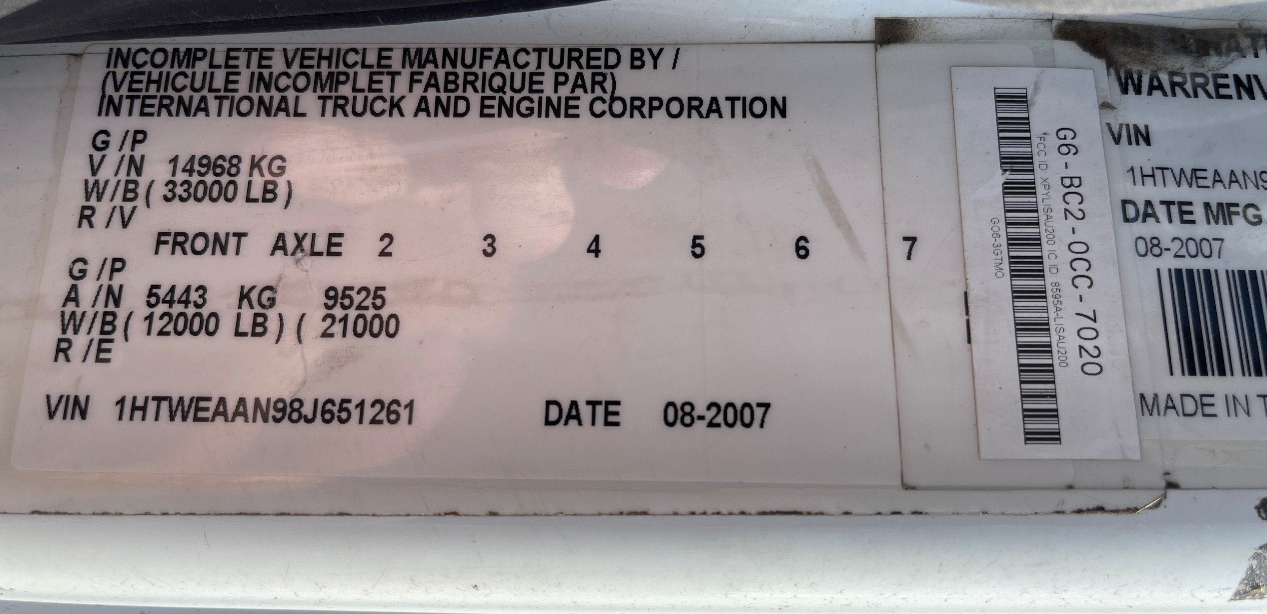 VIN: 1HTWEAAN98J651261