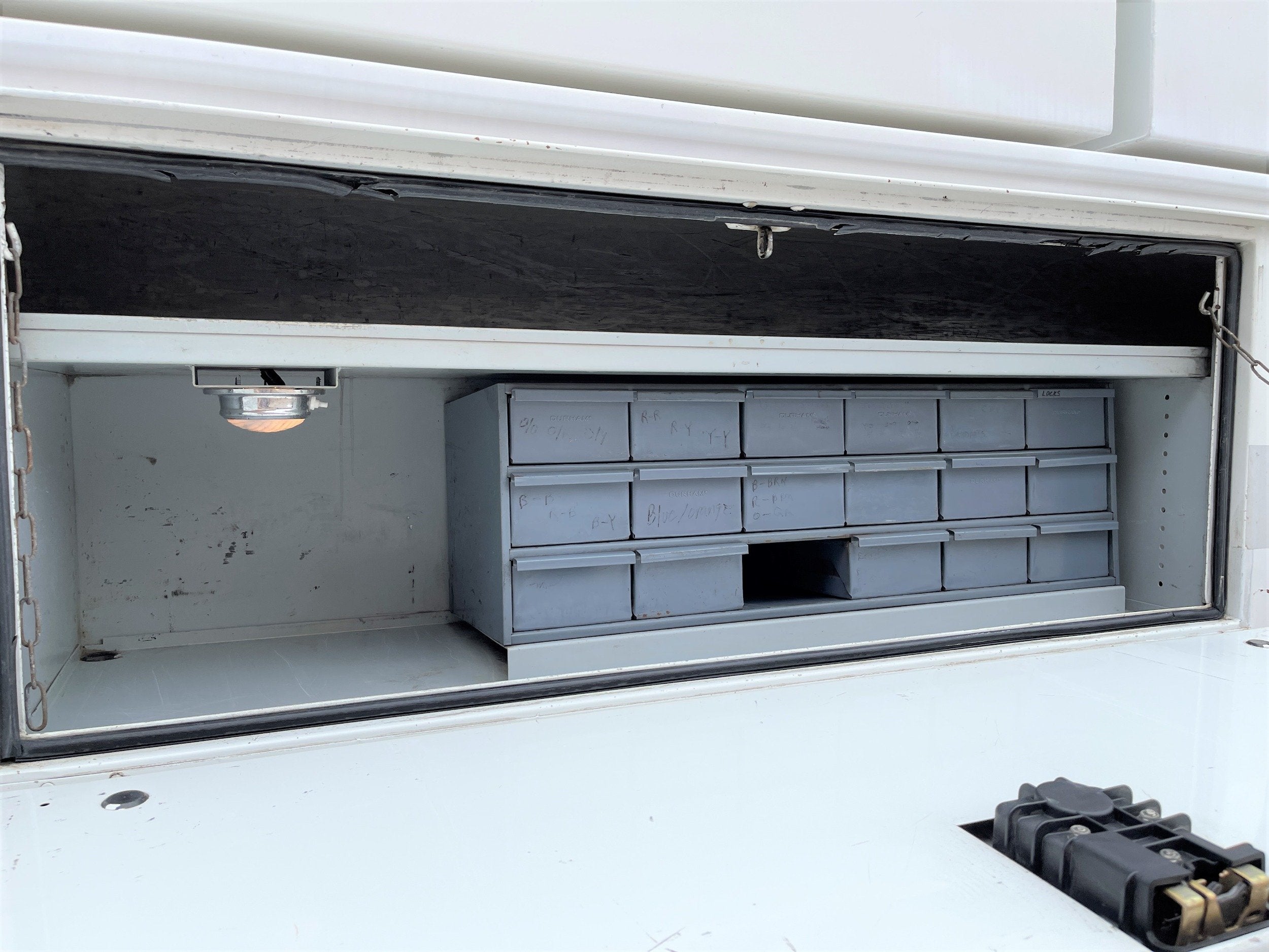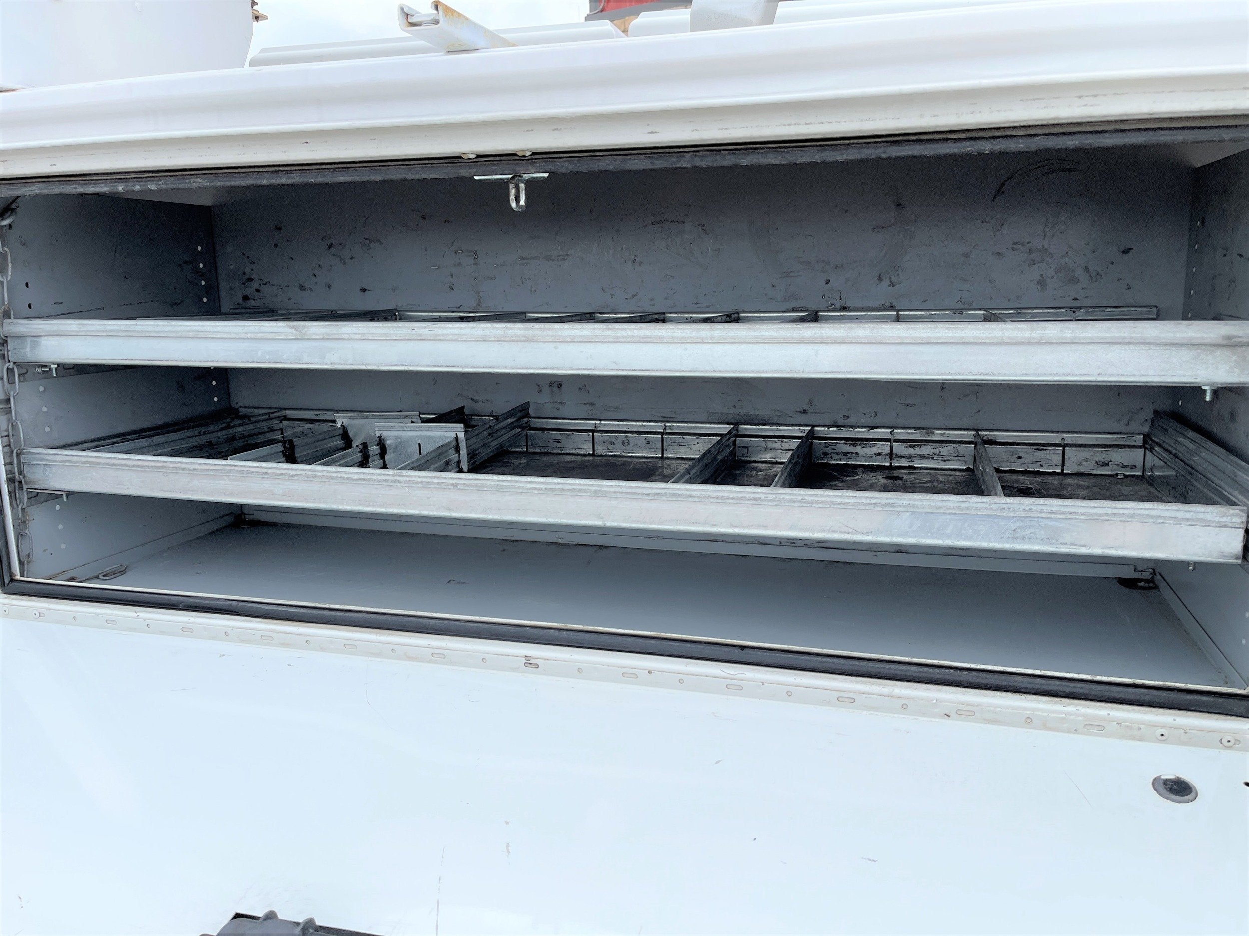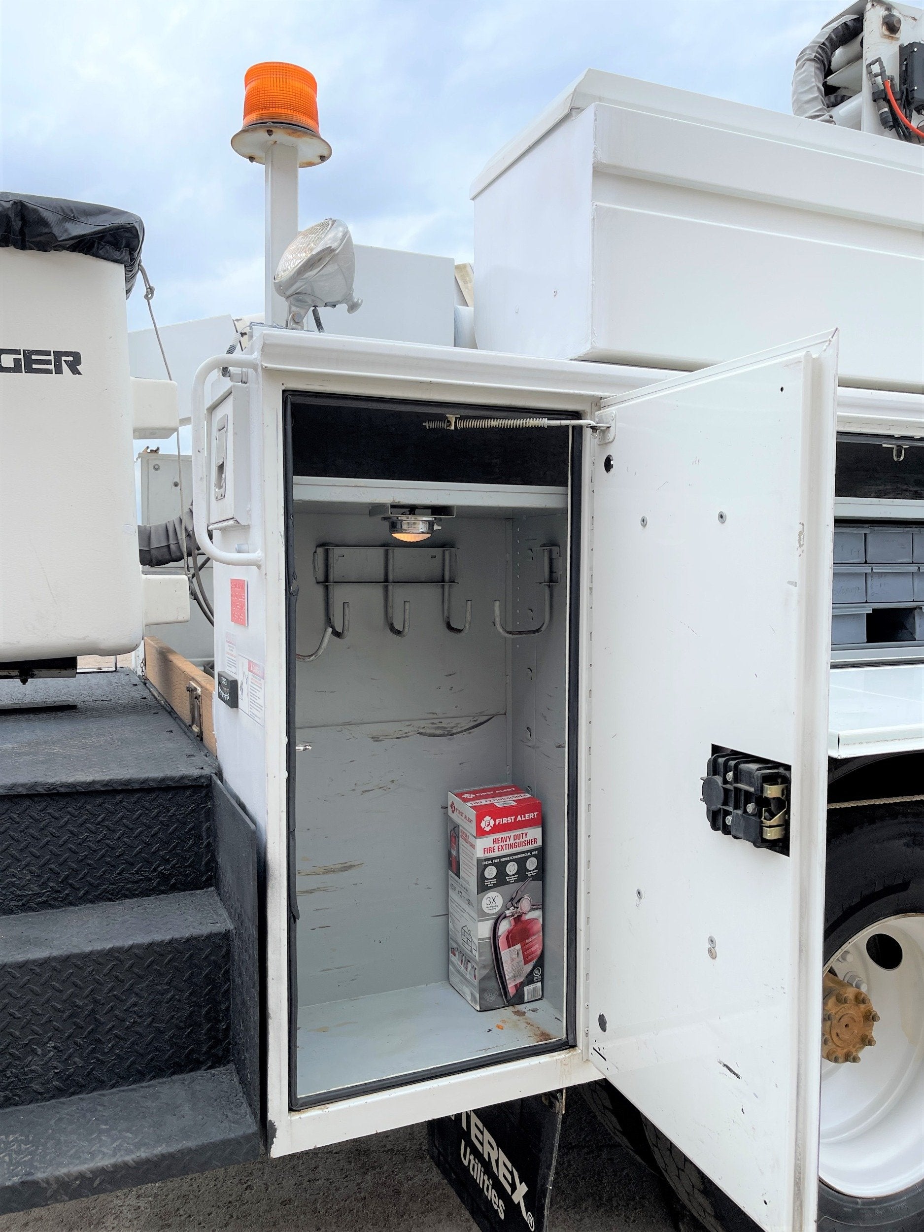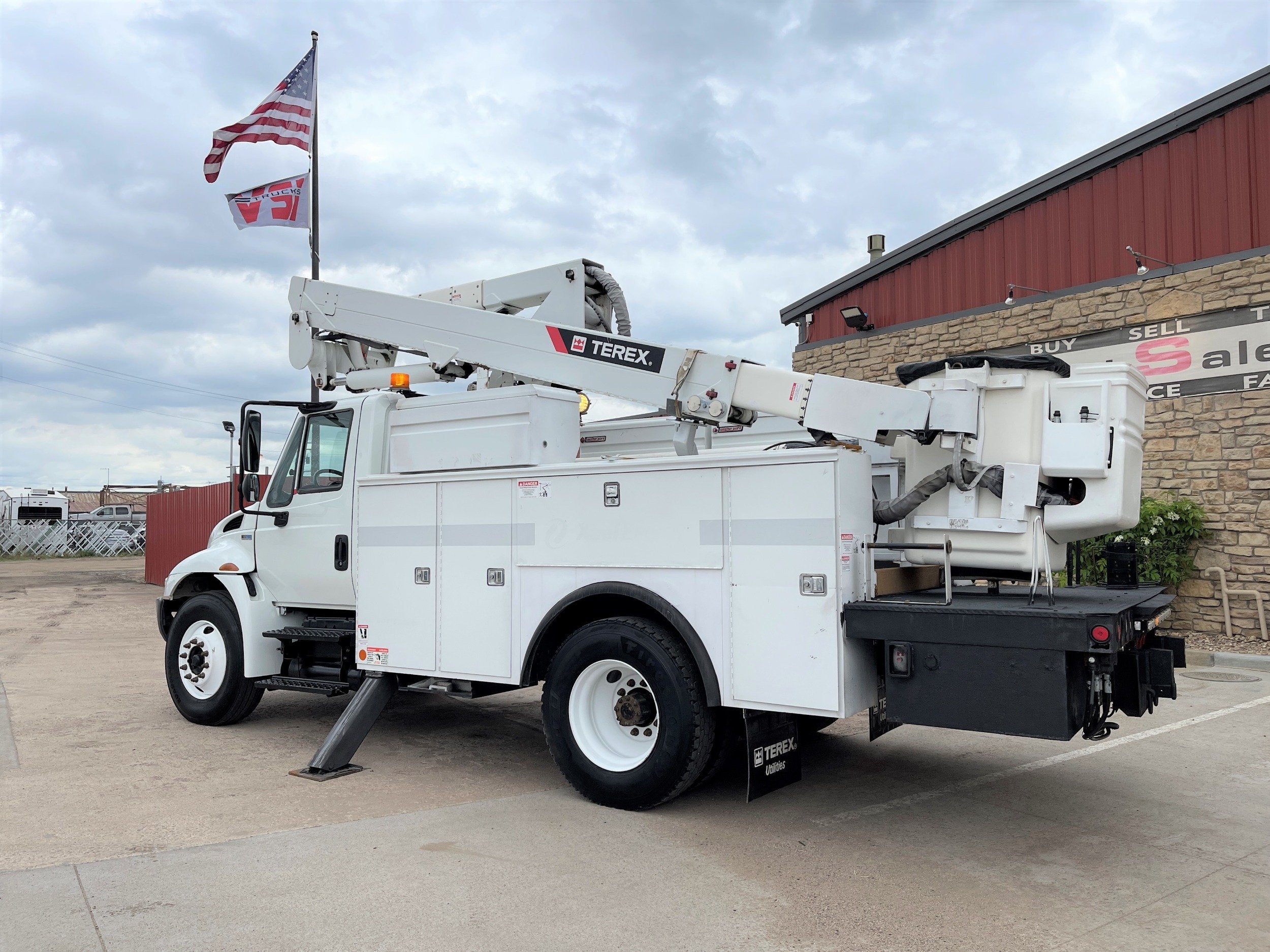 ** 2013 International 4300 Bucket Truck ** 7.6L DT466 (260HP) / Allison 3000 Automatic Transmission / Cloth Driver Air Seat / Cloth Passenger Seat / AM,FM,AUX Stereo / Cold AC / Manual Windows / Manual Locks / 14' Utility Box / 8 Locking Cabinets / Terex Hi-Ranger TL-41 41ft Bucket / Platform Capacity of up to 600 lb /