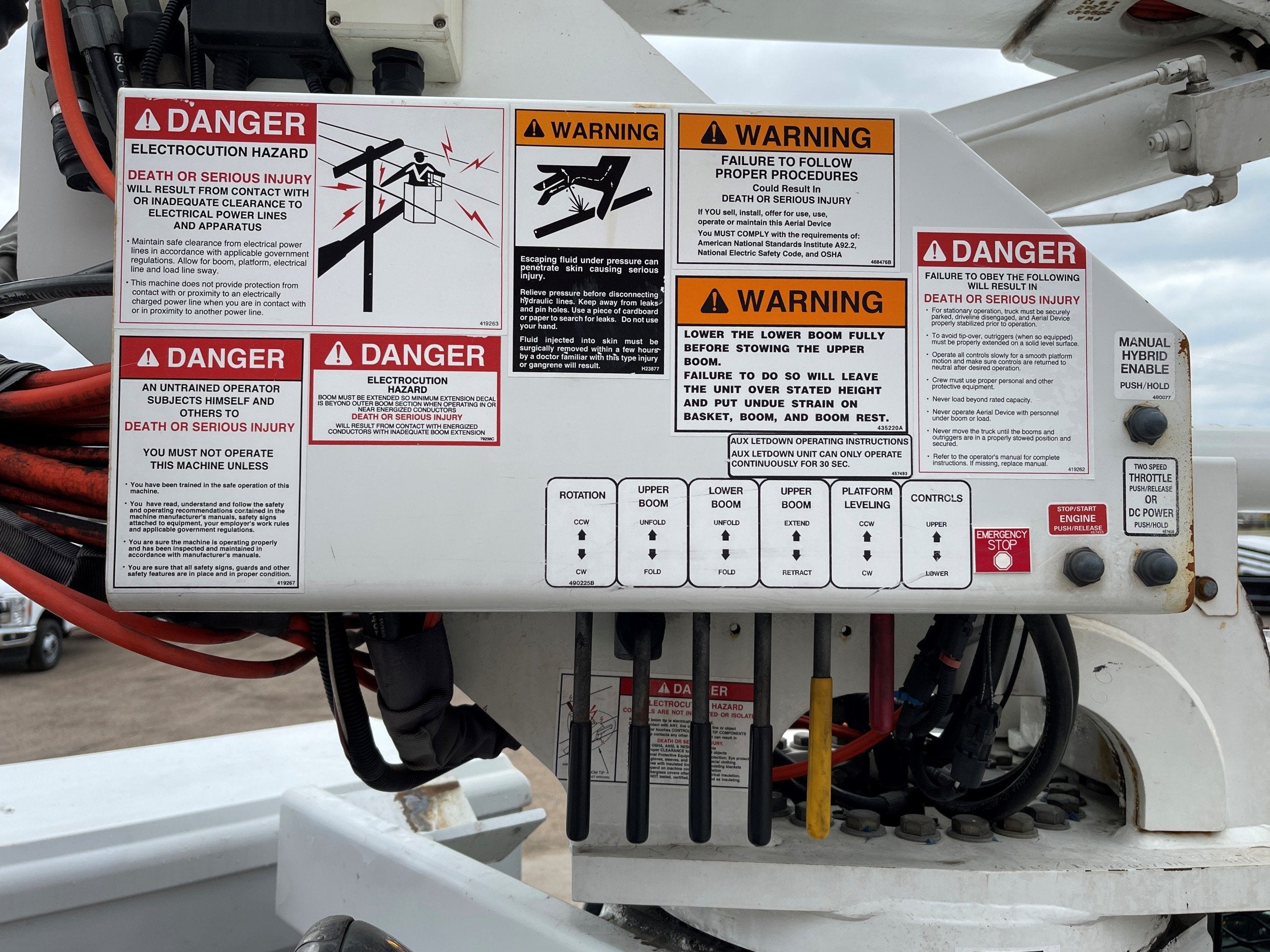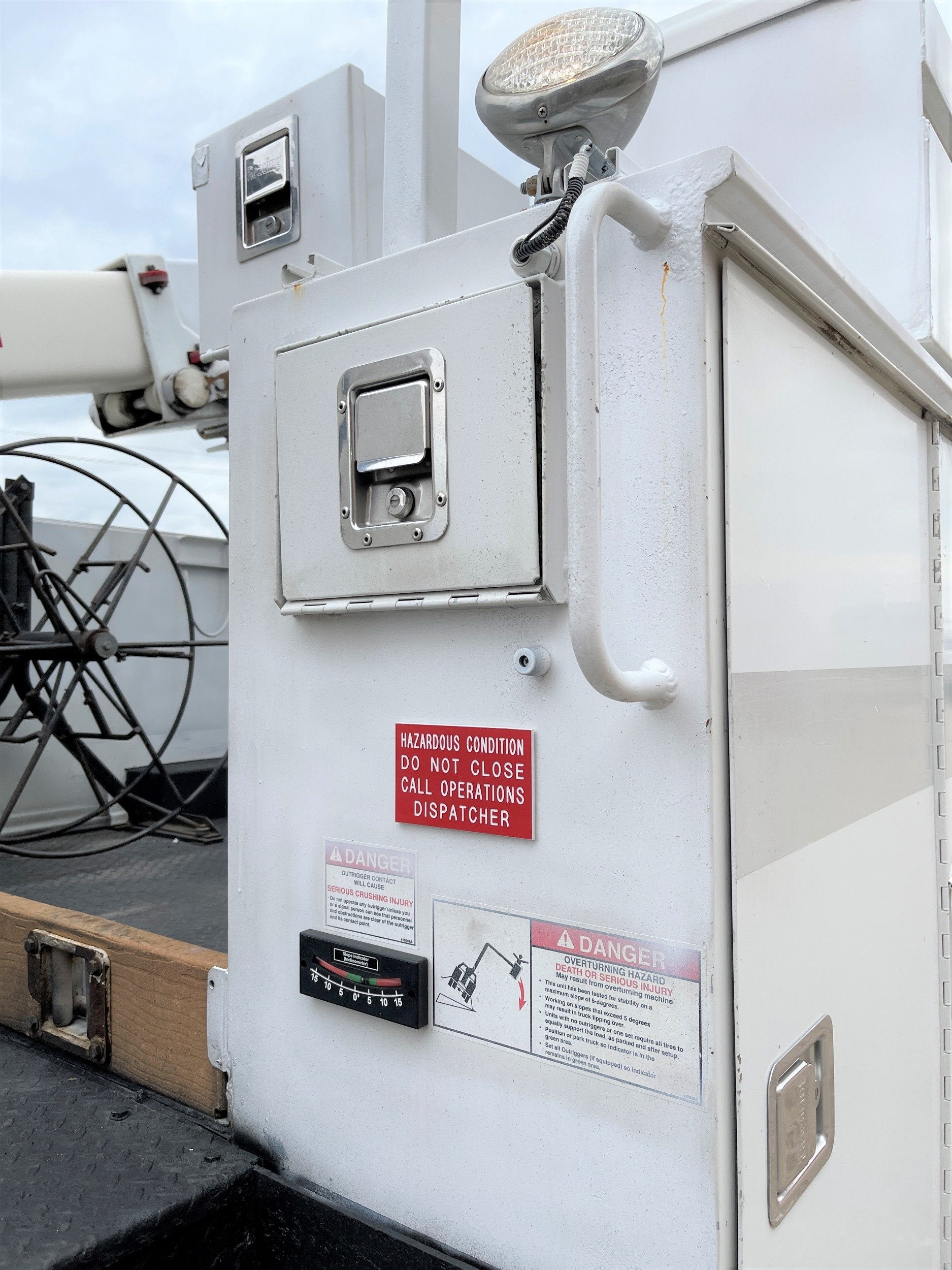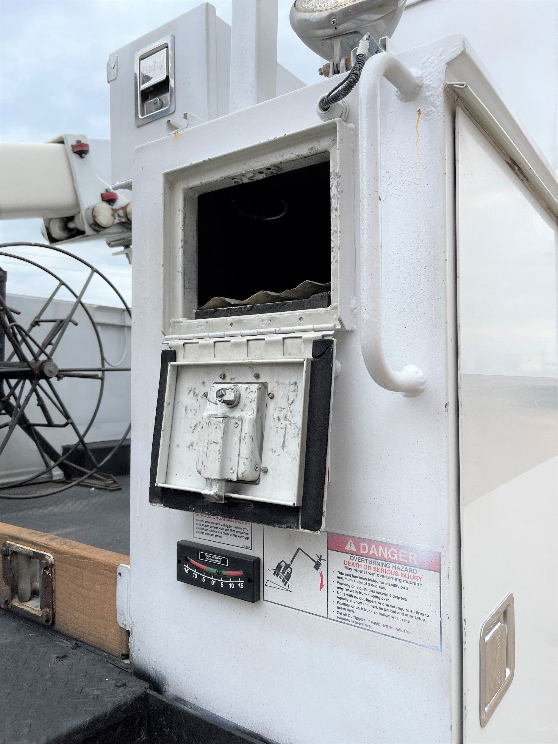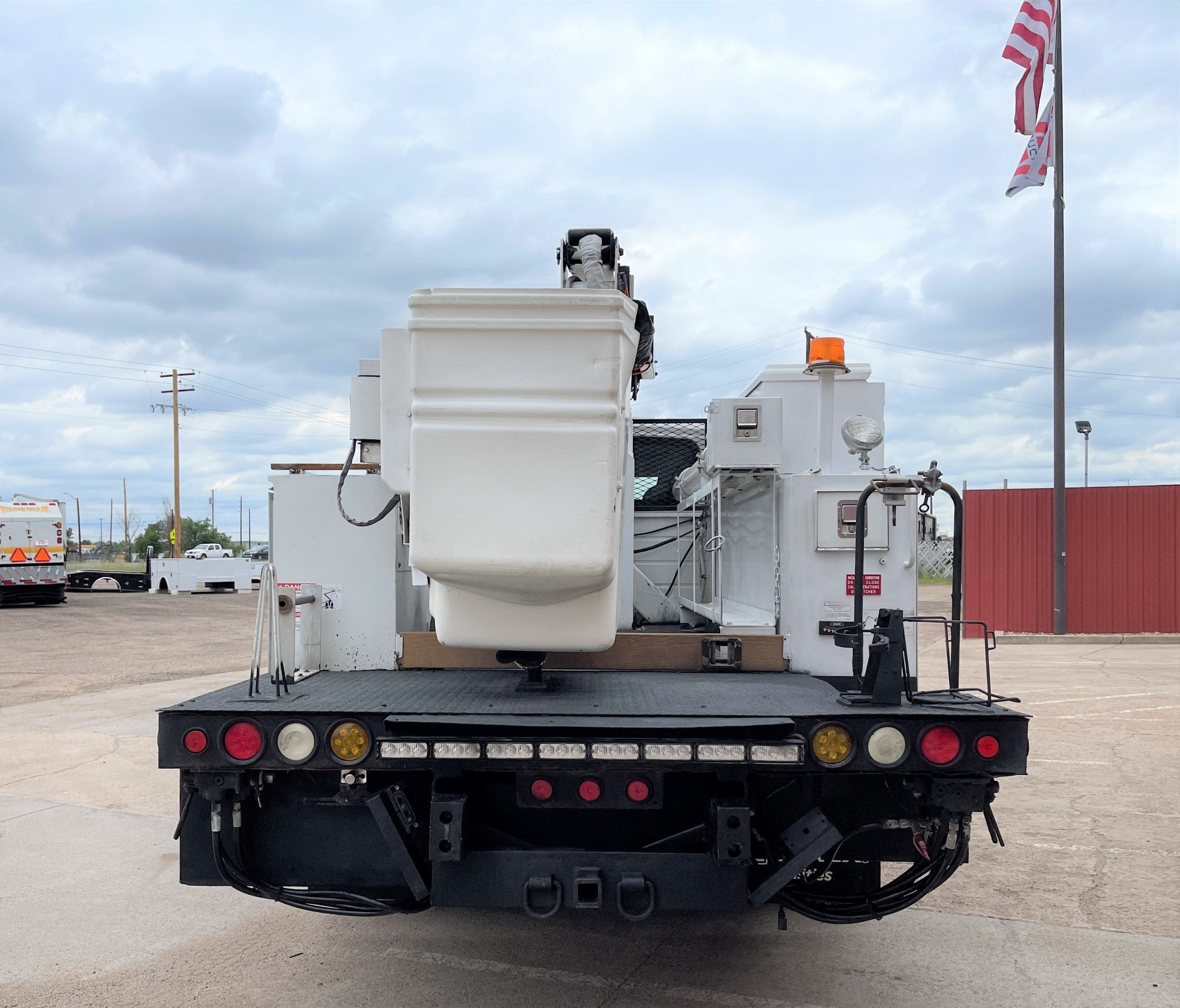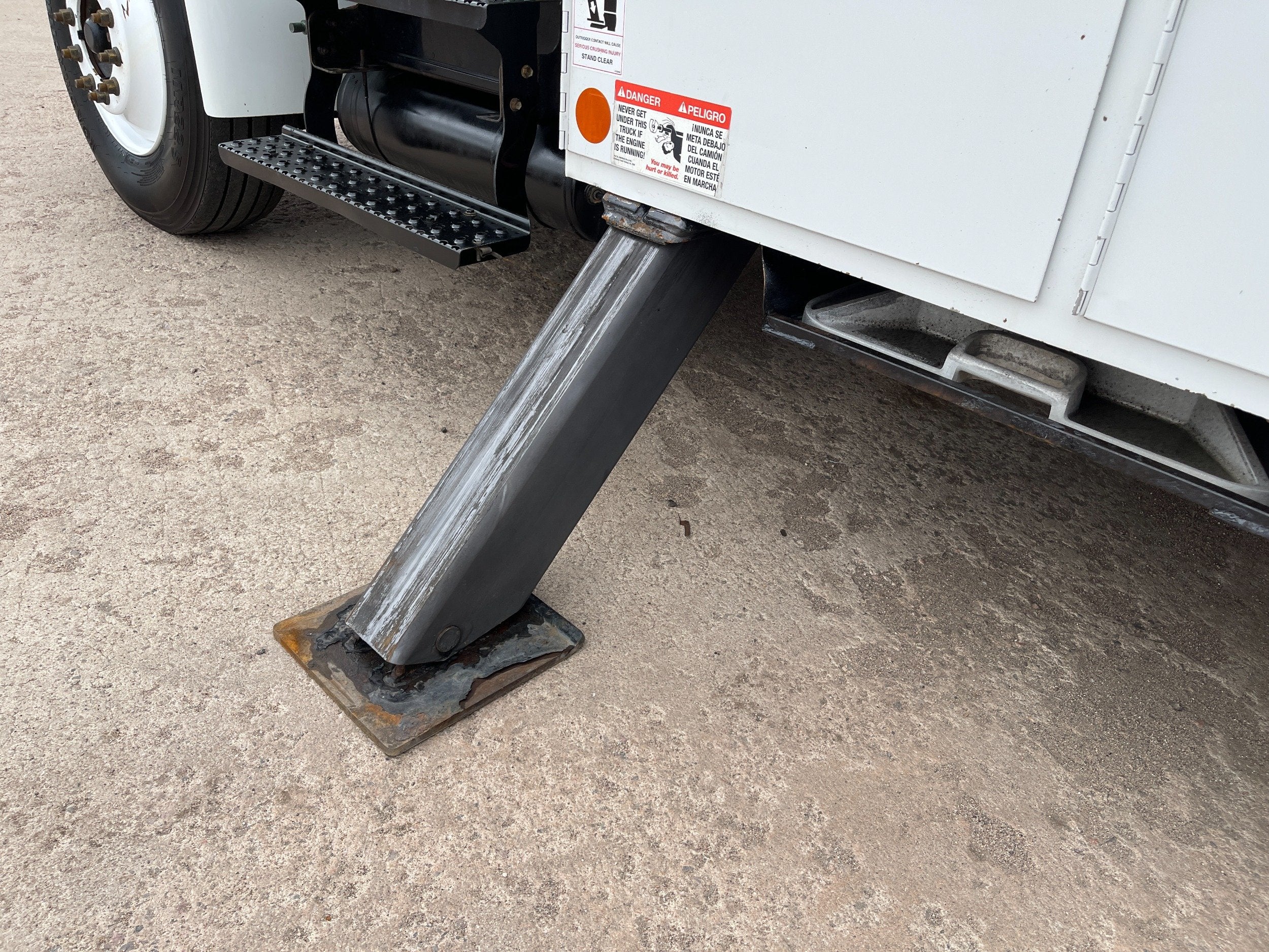 4-Function Single Stick / Two Speed Throttle / Hydraulic Outriggers / Receiver Hitch / Power Rotating Spotlight / Work Lights / Warning Strobes. / GVWR: 33,000lbs / Front Axle: 12,000lbs, / Rear Axle: 21,000lbs. / Steel Wheels / Newer Tires: 295/75R22.5. and Much More !!