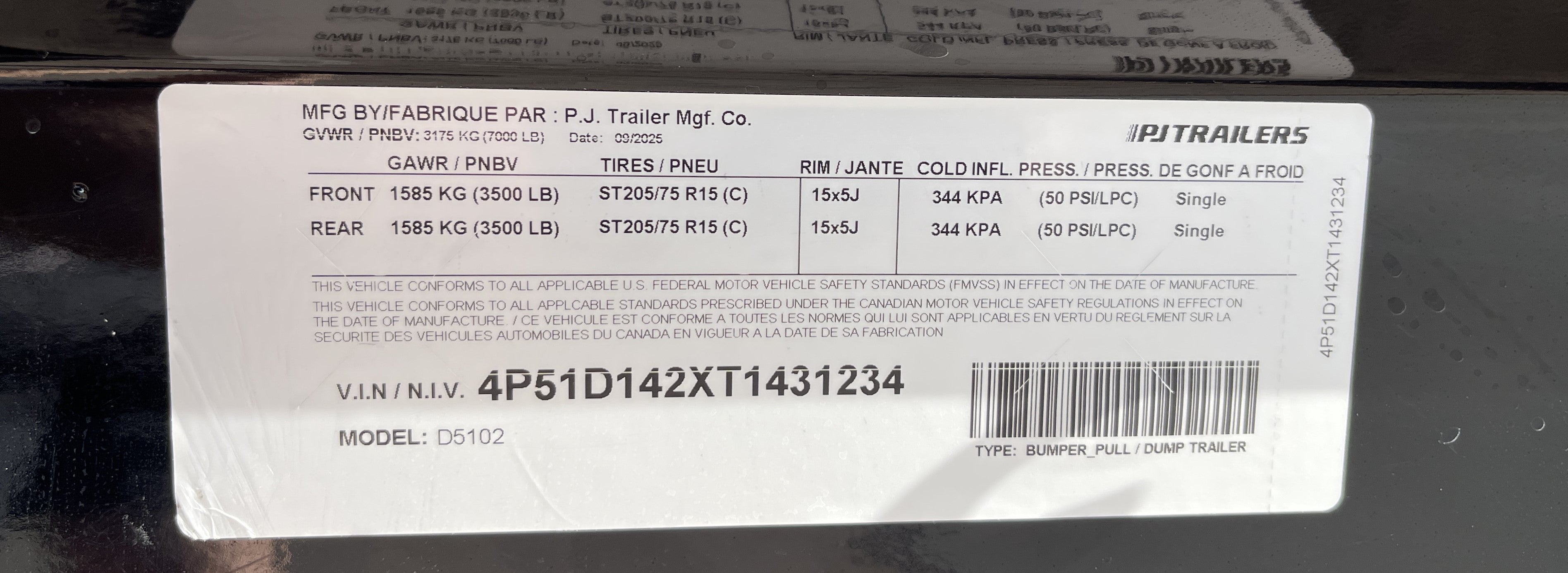 ** 2026 PJ D5 10ft Utility Dump Trailer **