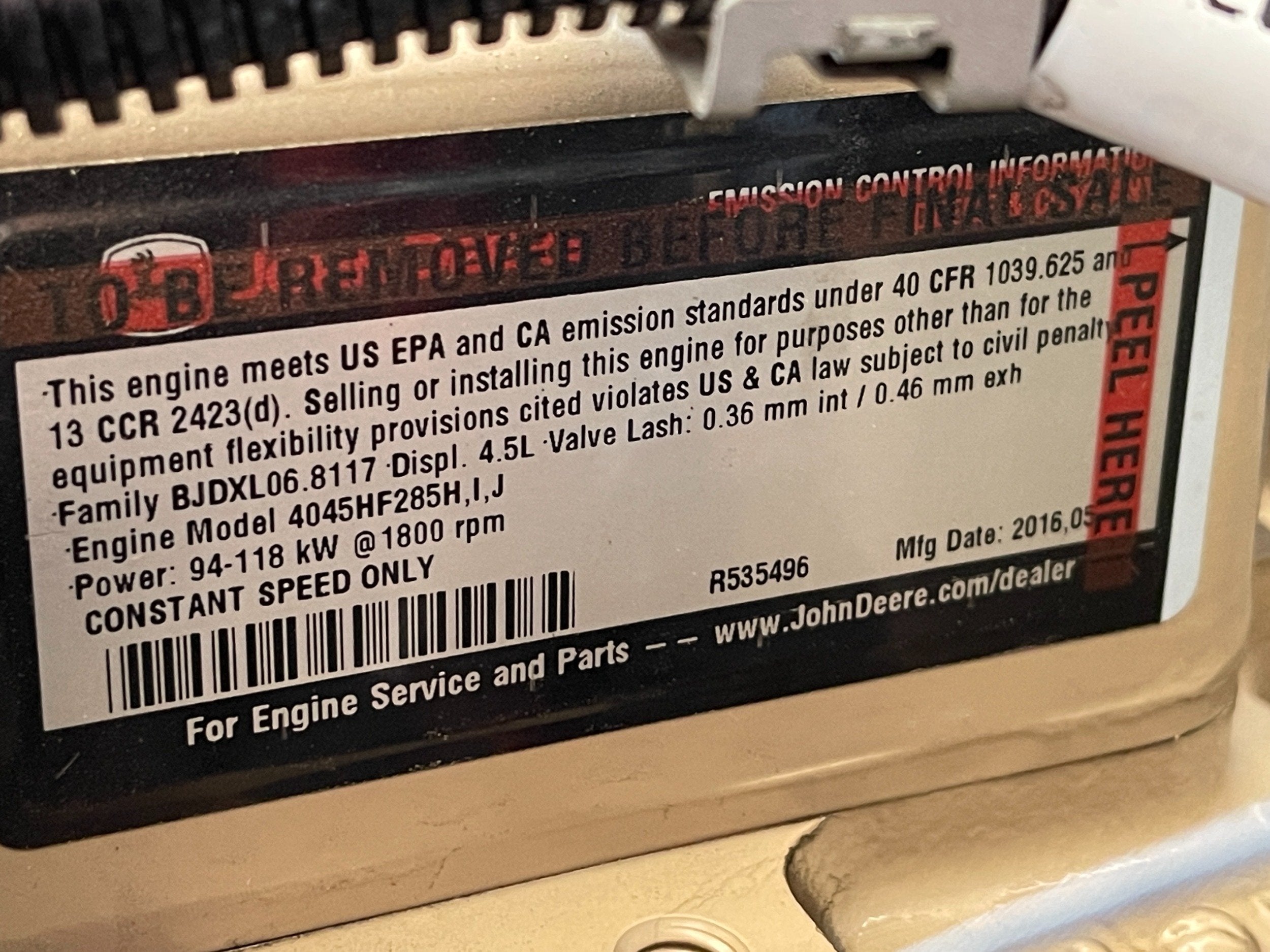 5.2L Diesel (210 HP) / Automatic Transmission / Tilt Steering / Cloth Split Bench Seat / Power Windows / Power Door Locks / Cruise Control / Cold AC / AM,FM,CD ,AUX Stereo / MagnaPlus 480 volt AC generator / 3 phase 60HZ 110kw / Power by a 4.3L John Deer Constant Speed Motor / 14'ft Dry Box ( 10ft Cargo Area With Shelves ) / Aluminum Box / Dock Height 40" / GVWR: 19,500lbs, / Front Axle: 7,275lbs / Rear Axle: 13,660lbs. / Steel Wheels / Newer Tires (22/70R19.5) and Much More..!!