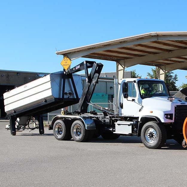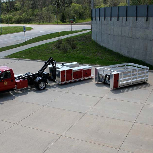 Stellar Hydraulic Shuttle Hook Lift Trucks can handle a variety of bodies ranging from flatbeds to recycling containers to dump bodies and more. Two independently controlled cylinders operate all the functions of our shuttle hooklift trucks.