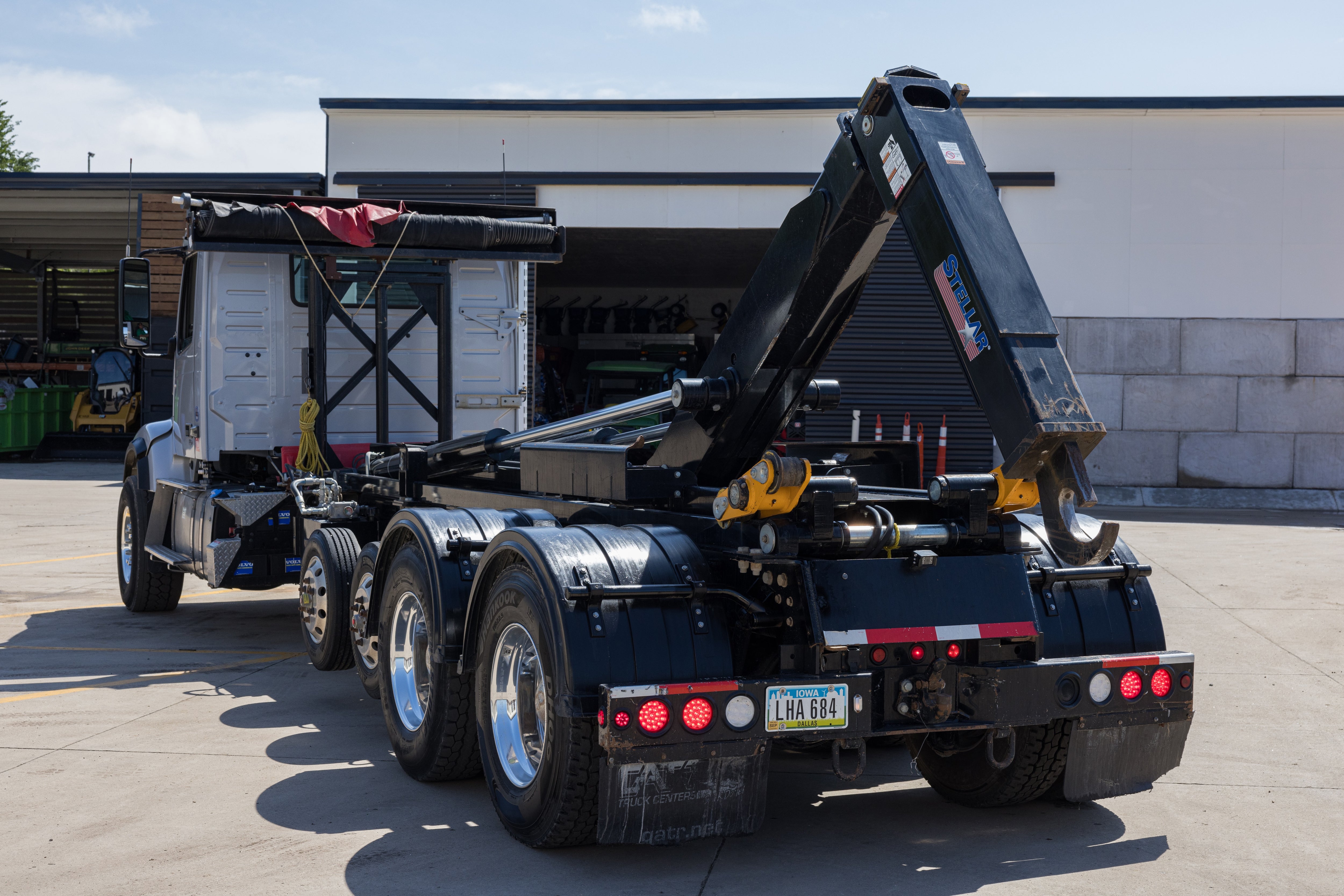 Stellar Slider Hook Lift Trucks provide a full-length dump frame and rollers positioned throughout the loader, instead of saddles with wear pads. Each and every Stellar Hooklift Truck operates using in-cab controls, which allow for metering of the hydraulic valve while offering a clear view of the operation through the rear window.